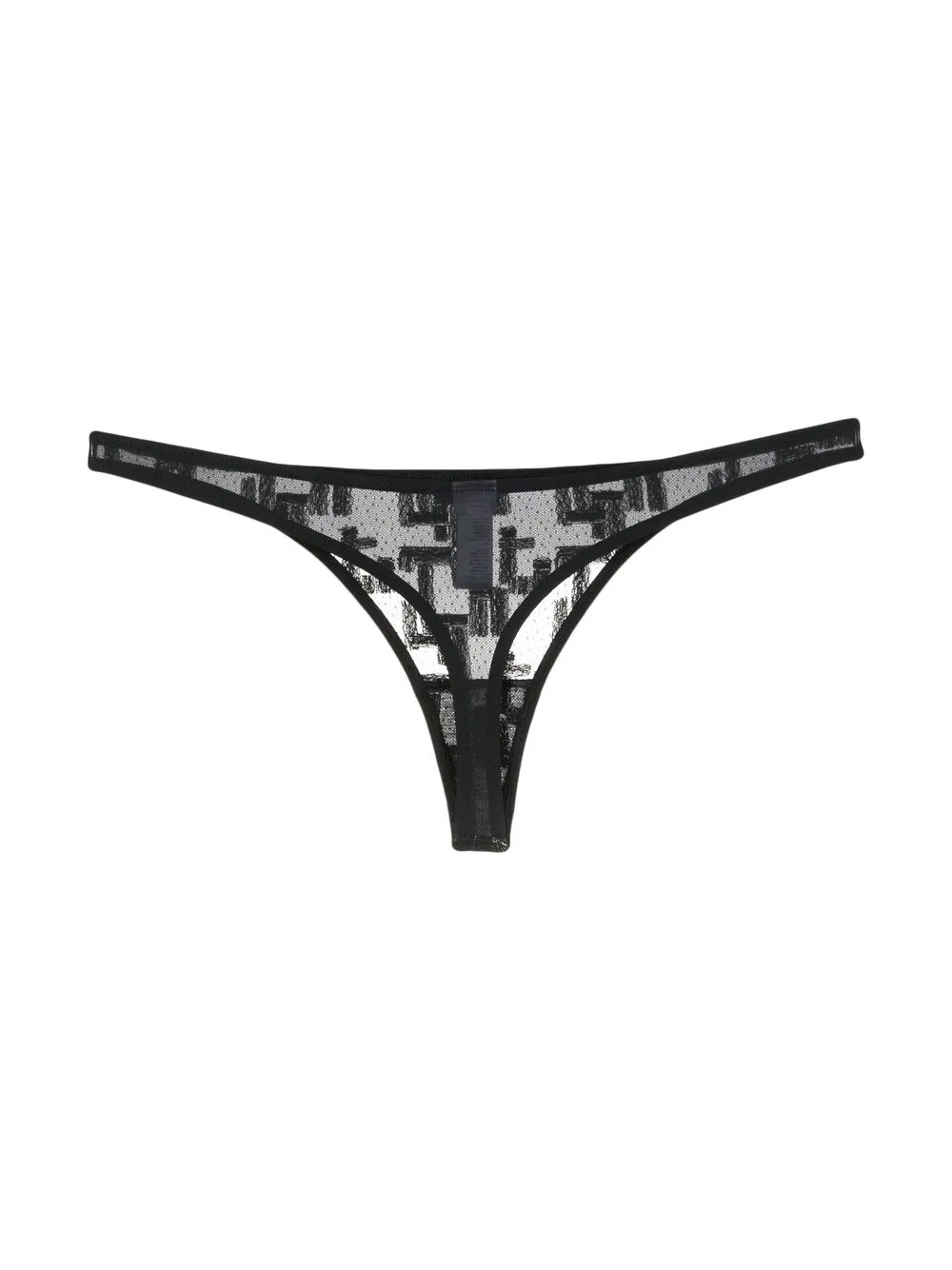 Черный, полупрозрачный дизайн, низкая посадка и геометричный узор. Эту вещь можно примерить, но только поверх собственного белья.