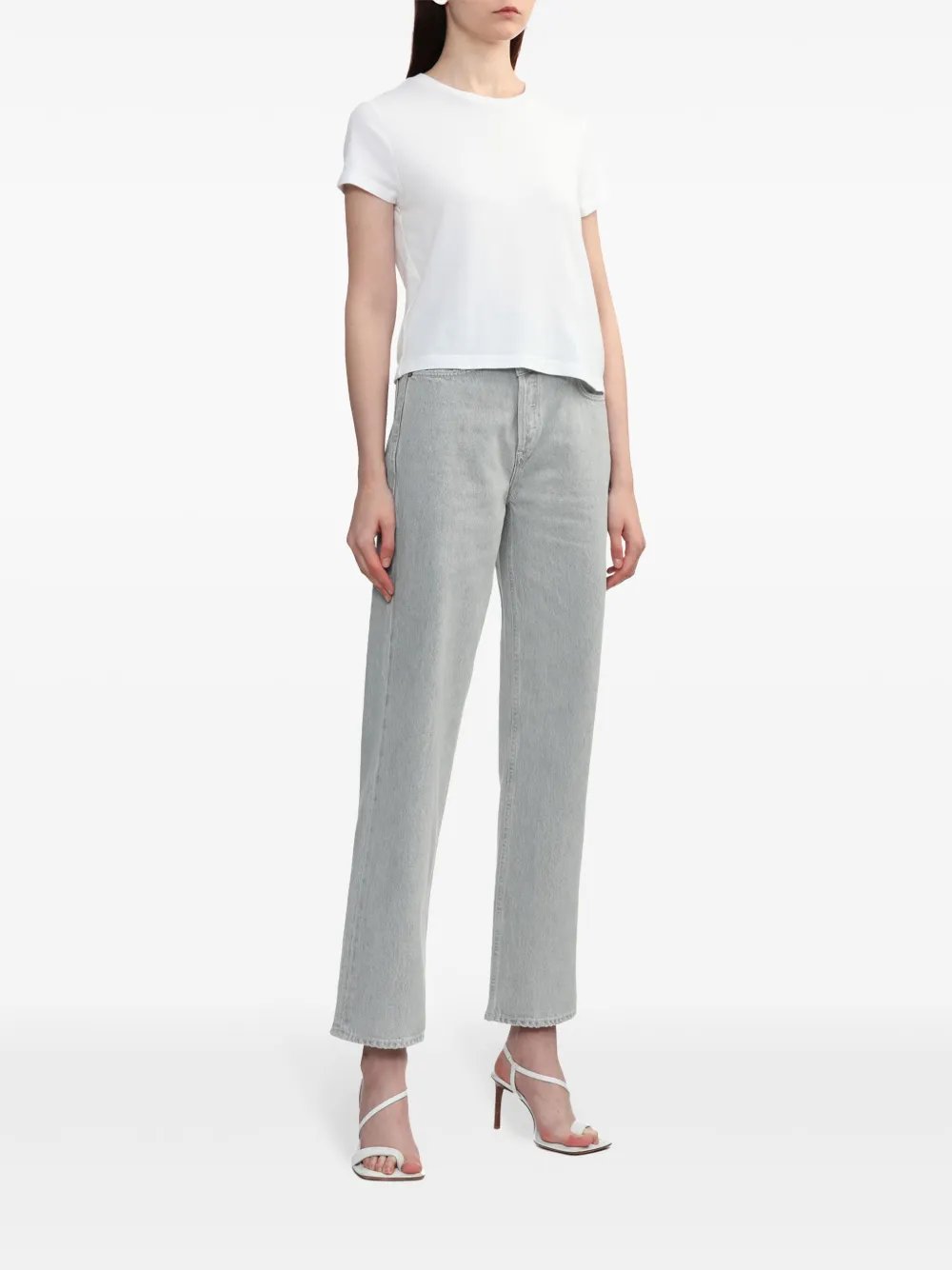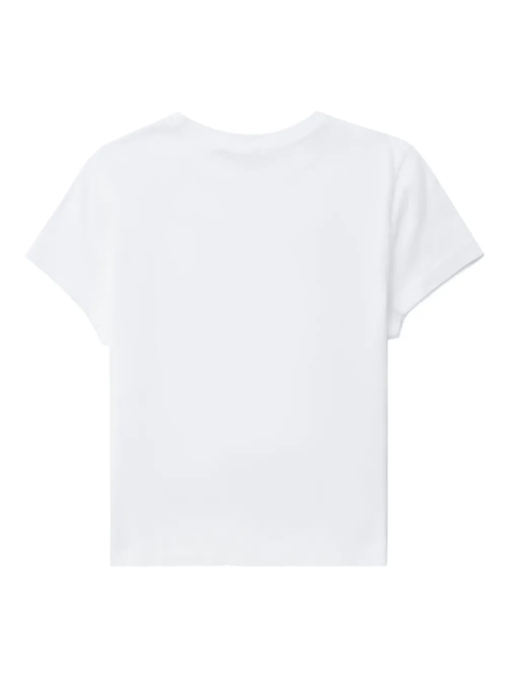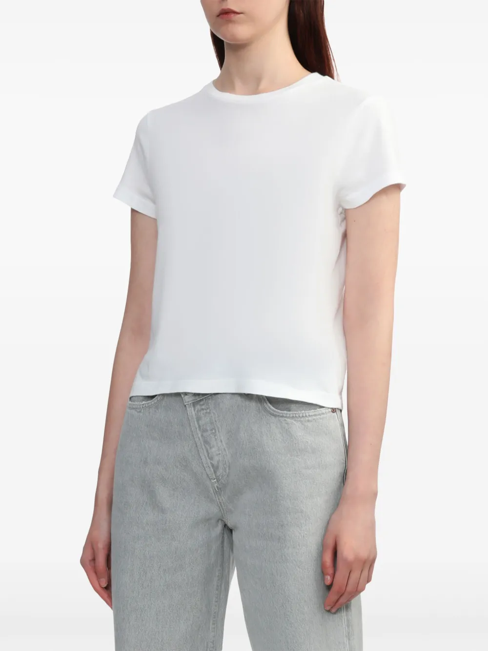 Белый, хлопок, круглый вырез, короткие рукава и укороченная длина.