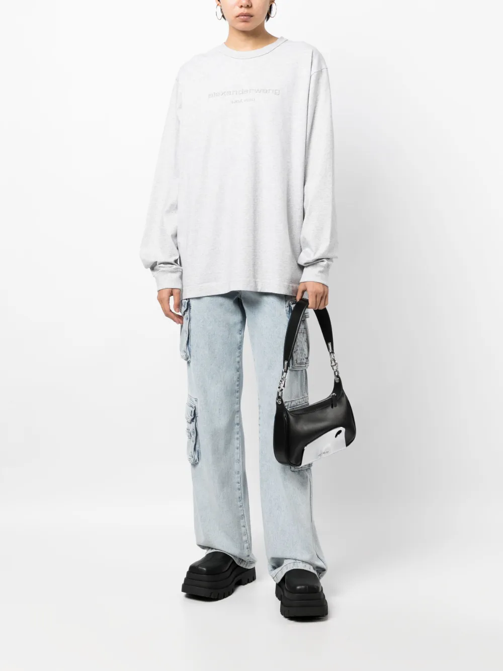 Футболка с логотипом и блестками Alexander Wang, серый