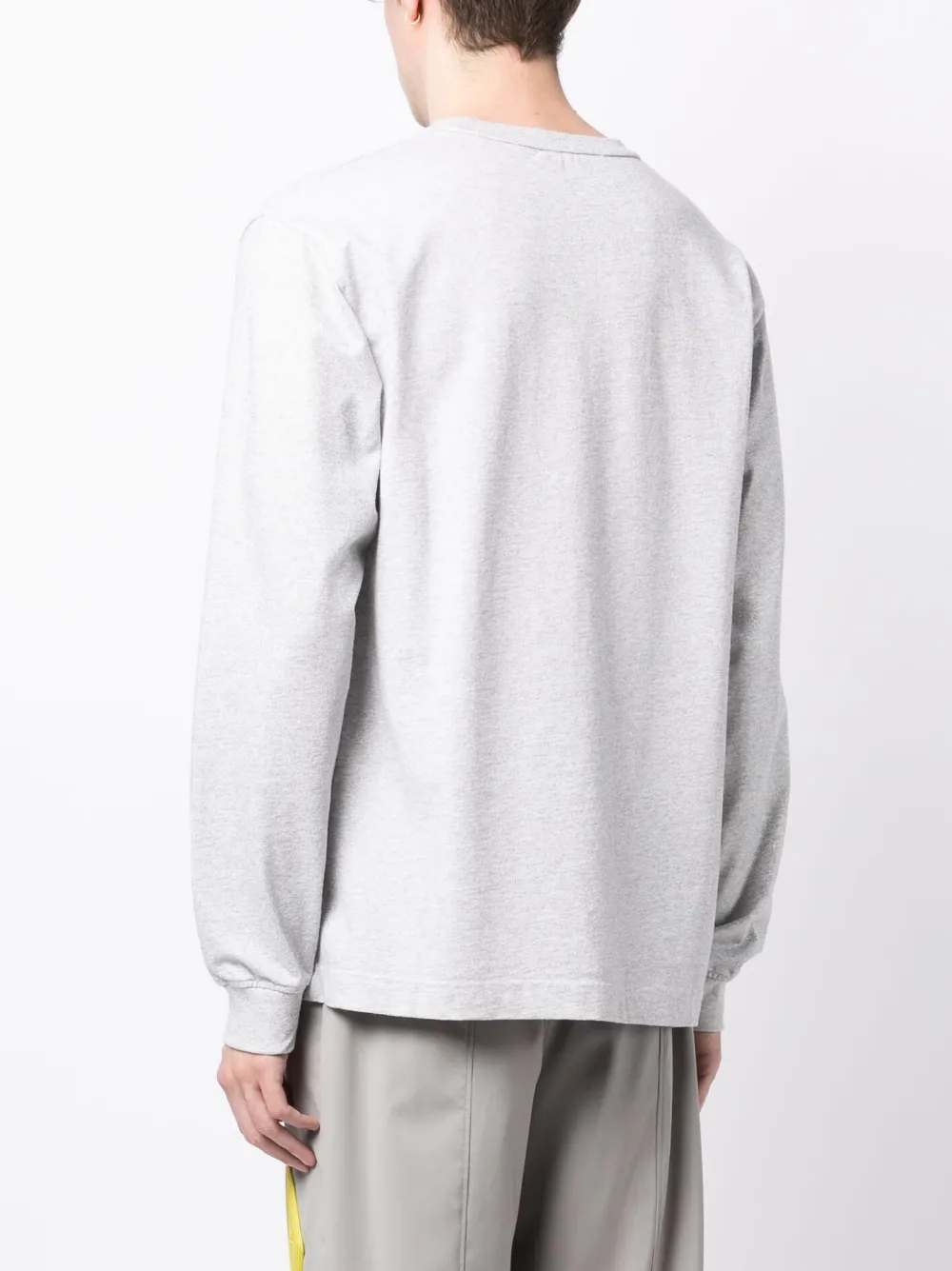 Светло-серый, хлопок, логотип, блестящий материал, круглый вырез, длинные рукава и прямой подол. Это унисекс-модель. Обратите внимание, что для нее используется мужская размерная сетка.
