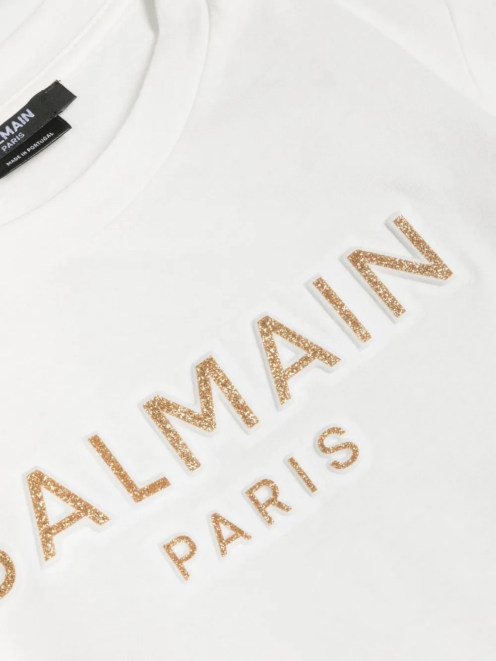 Футболка с логотипом и блестками Balmain Kids, белый 28 332₽