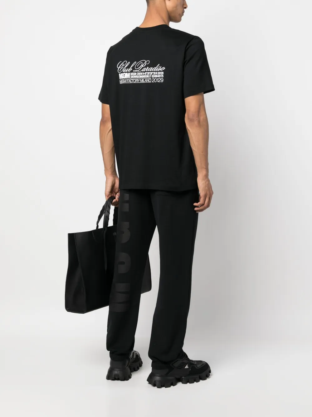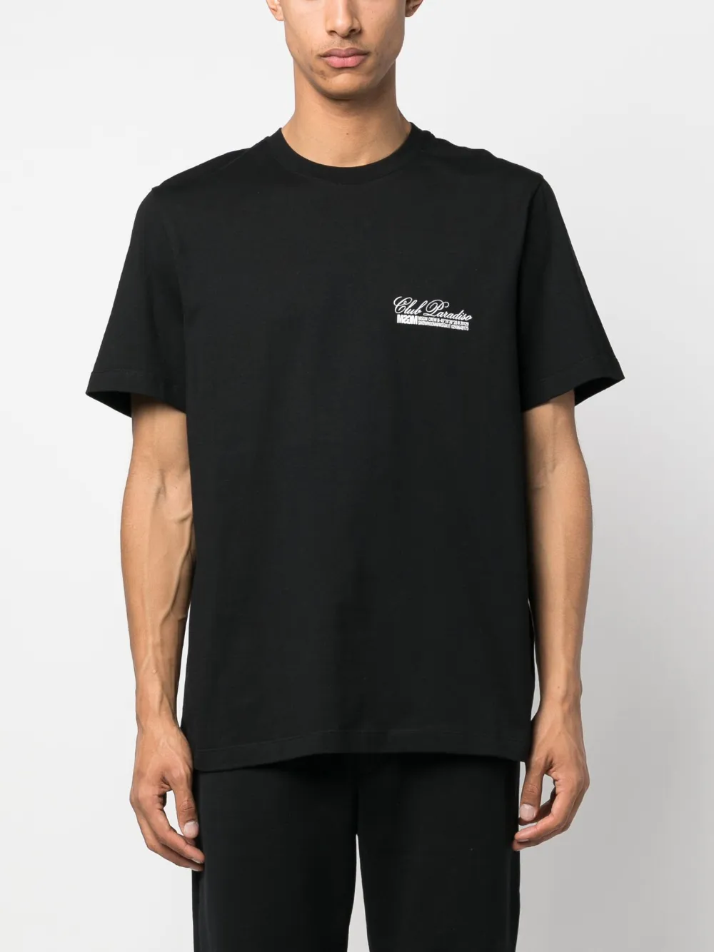 Черный, хлопок, принт с логотипом на груди, текстовый принт, круглый вырез, короткие рукава и прямой подол.