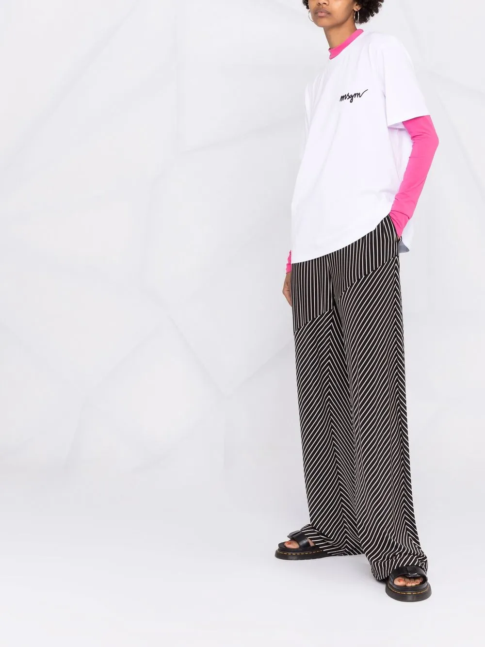 Принт с логотипом на груди, круглый вырез, короткие рукава и прямой подол. Цвет: белый.