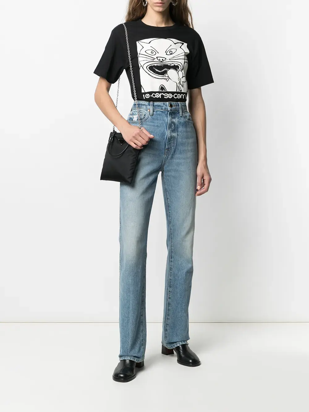 Принт-иллюстрация, круглый вырез и короткие рукава.