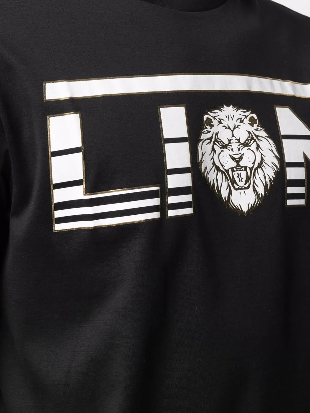 Анималистичный принт, принт с надписью спереди, круглый вырез, короткие рукава и прямой подол. Цвет: черный.