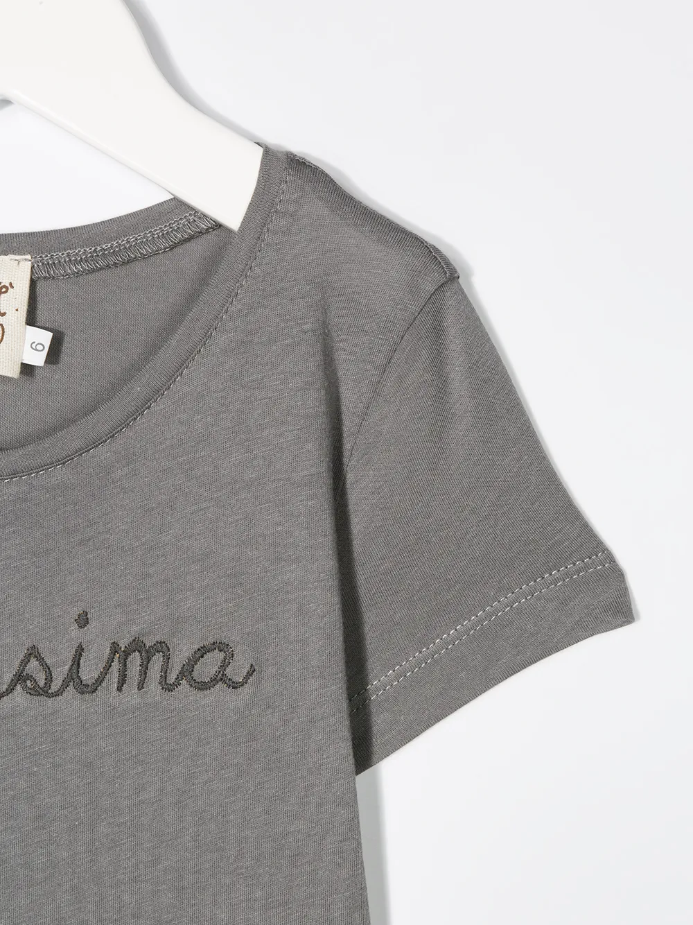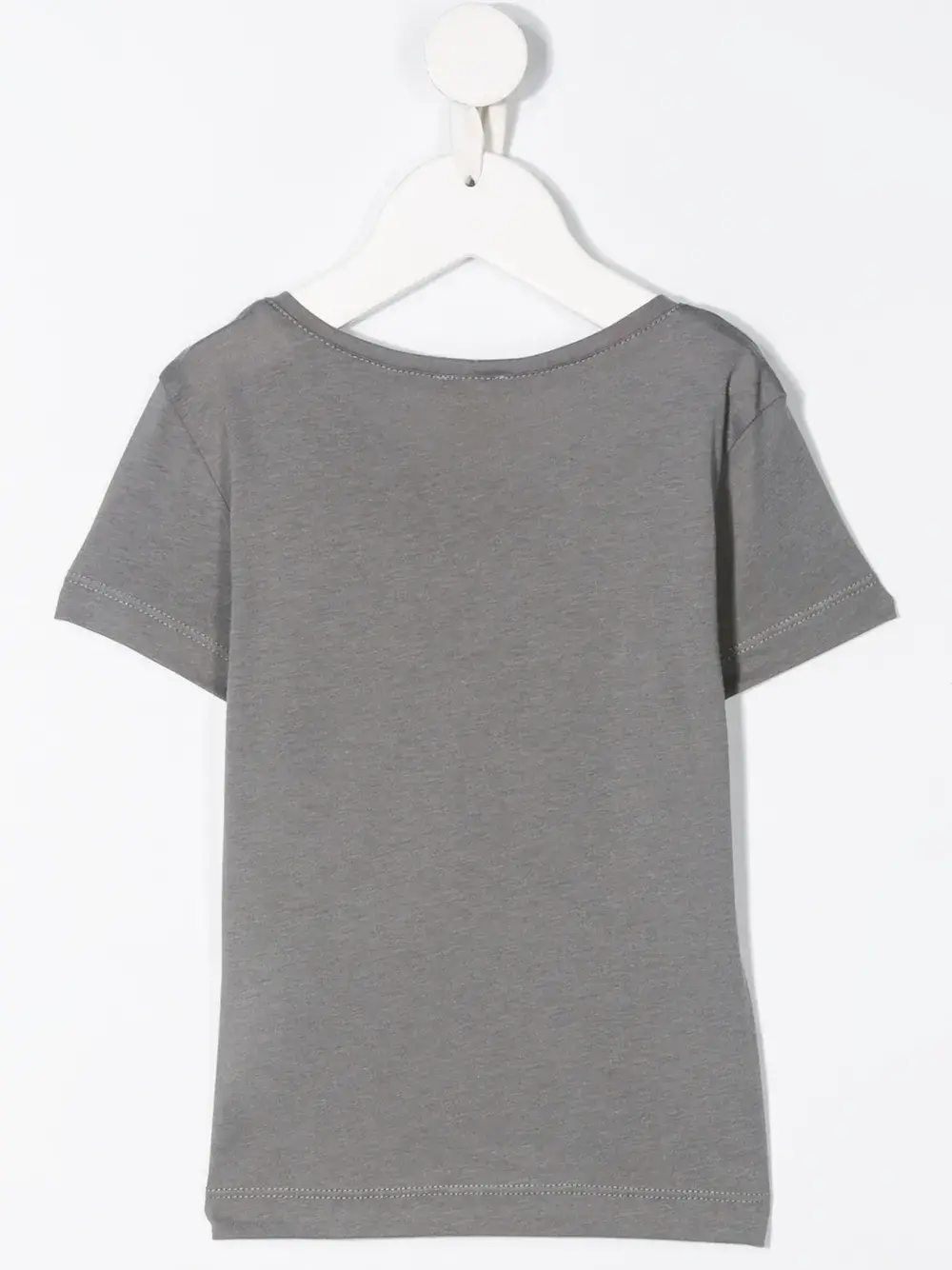 Футболка с принтом от Caffe' D'Orzo. Круглый вырез под горло с окантовкой, короткие рукава и принт с логотипом. Цвет: серый.