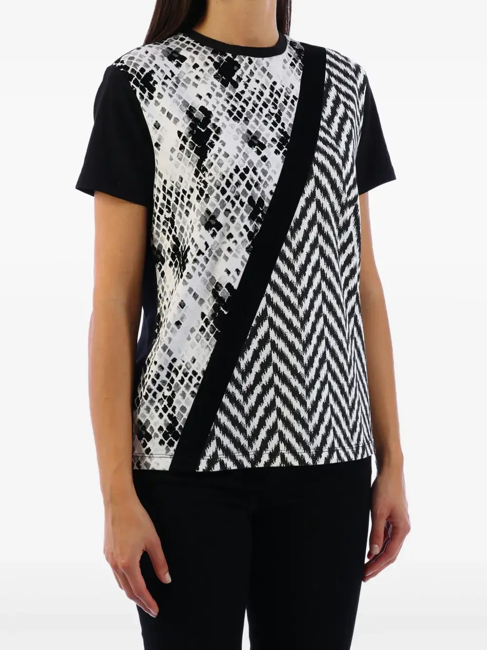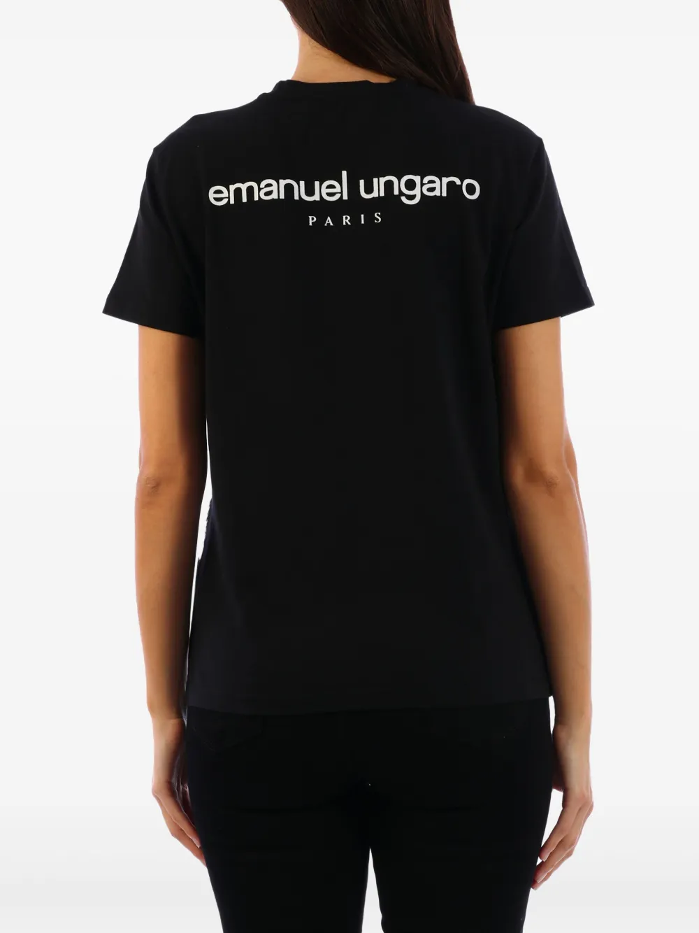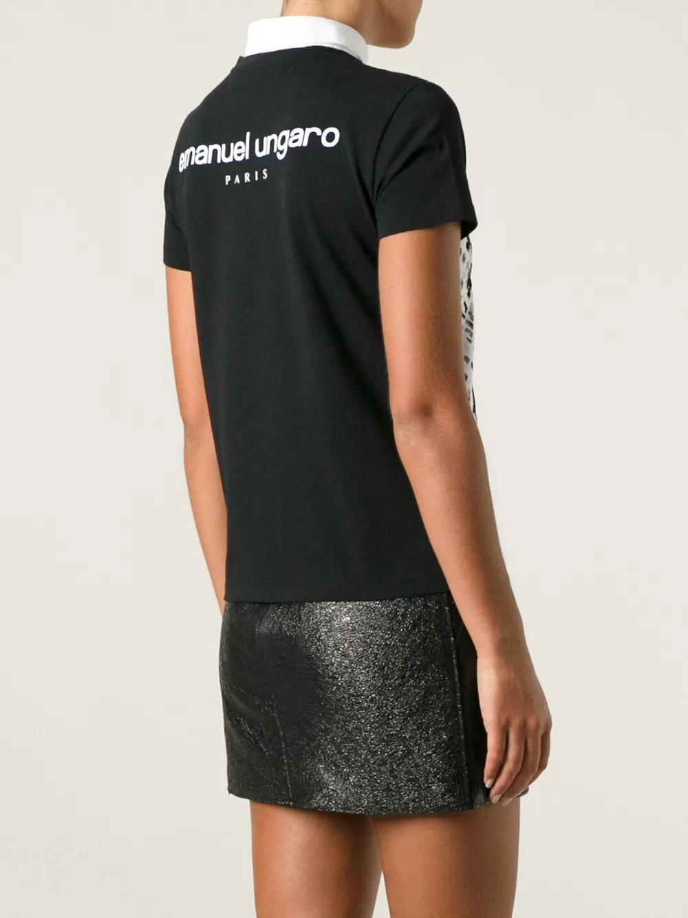 Черно-белая футболка c принтом от Emanuel Ungaro. Круглый вырез под горло, короткие широкие рукава, свободный крой, прямой подол.