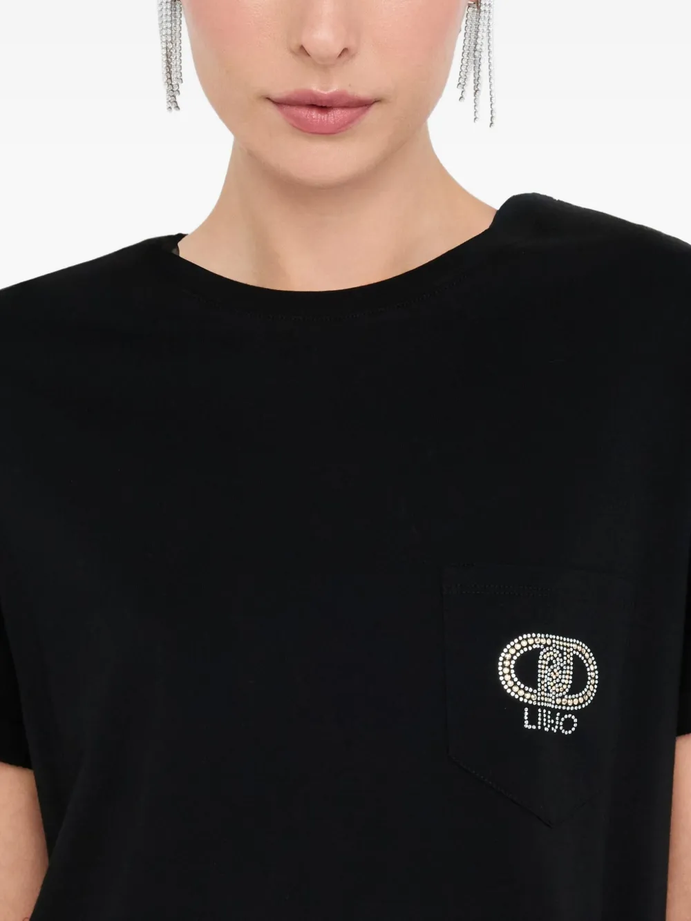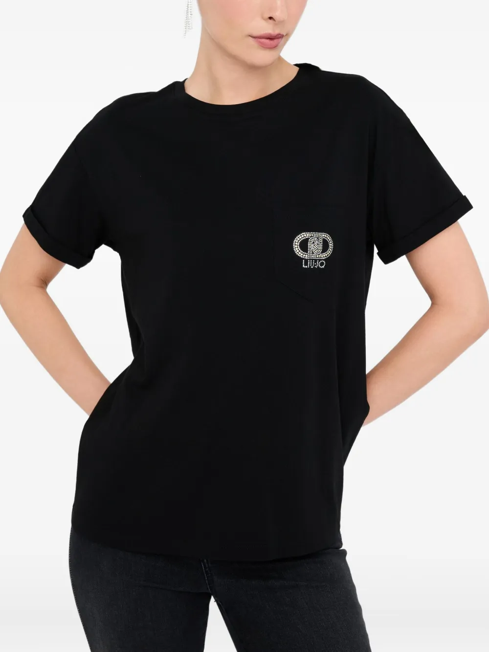 Футболка со стразами и логотипом LIU JO, черный