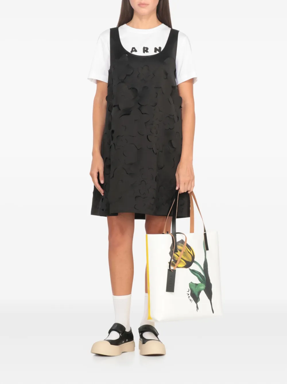Сумка-шоппер с принтом тюльпанов Marni, белый