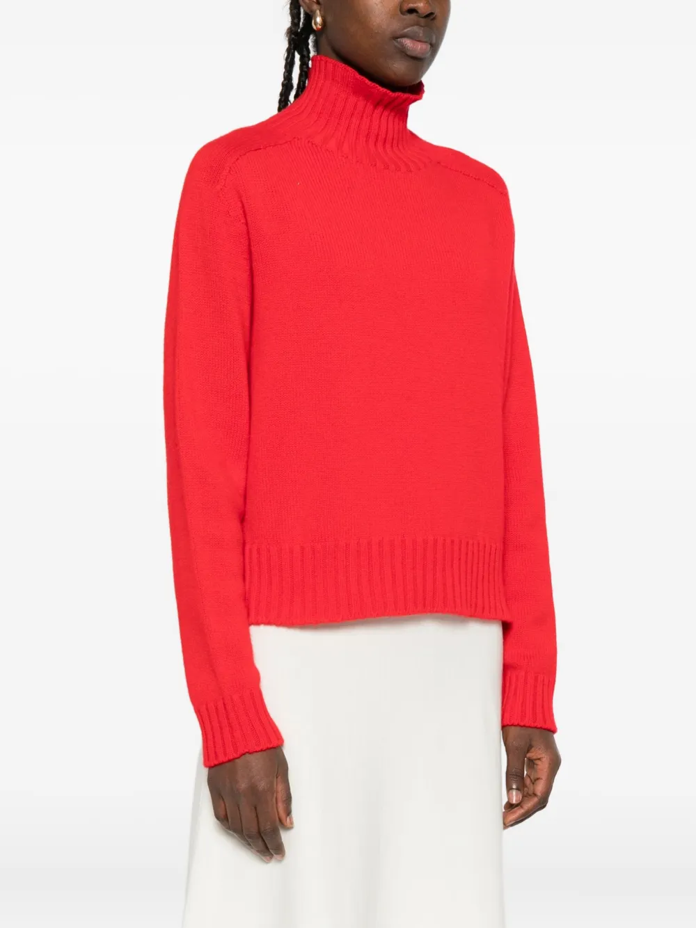 Красная водолазка с длинными рукавами, ребристым подолом, кашемир