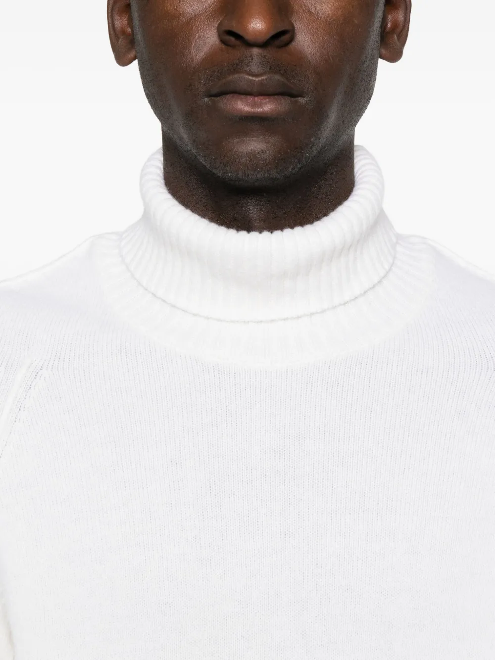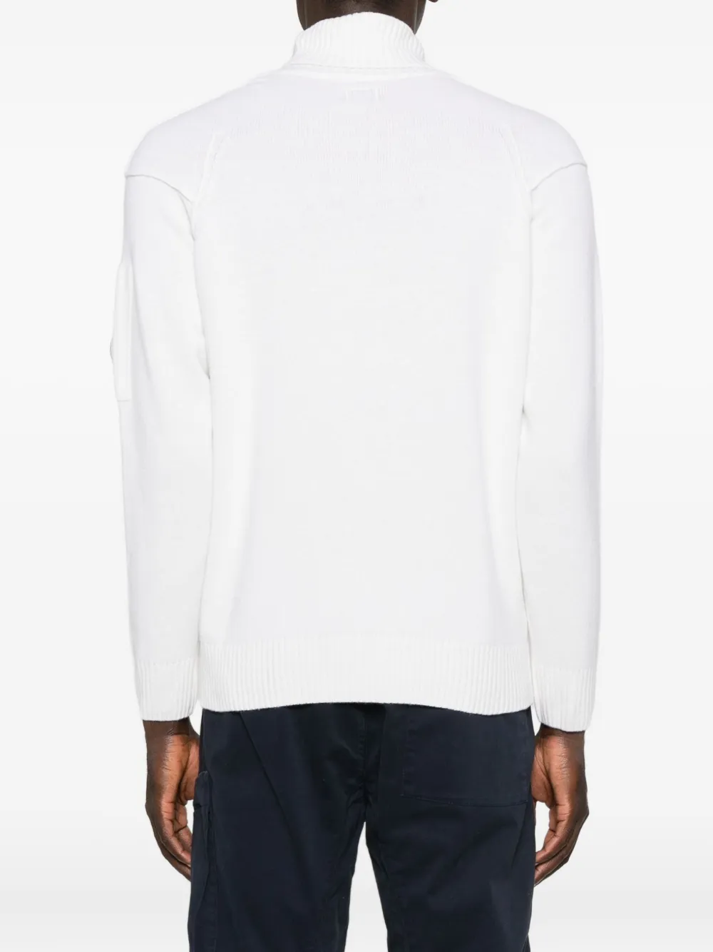 Белая водолазка, длинные рукава, ребристая отделка, детали в виде очков. Компания CP Company рекомендует снимать все съемные аксессуары перед стиркой.