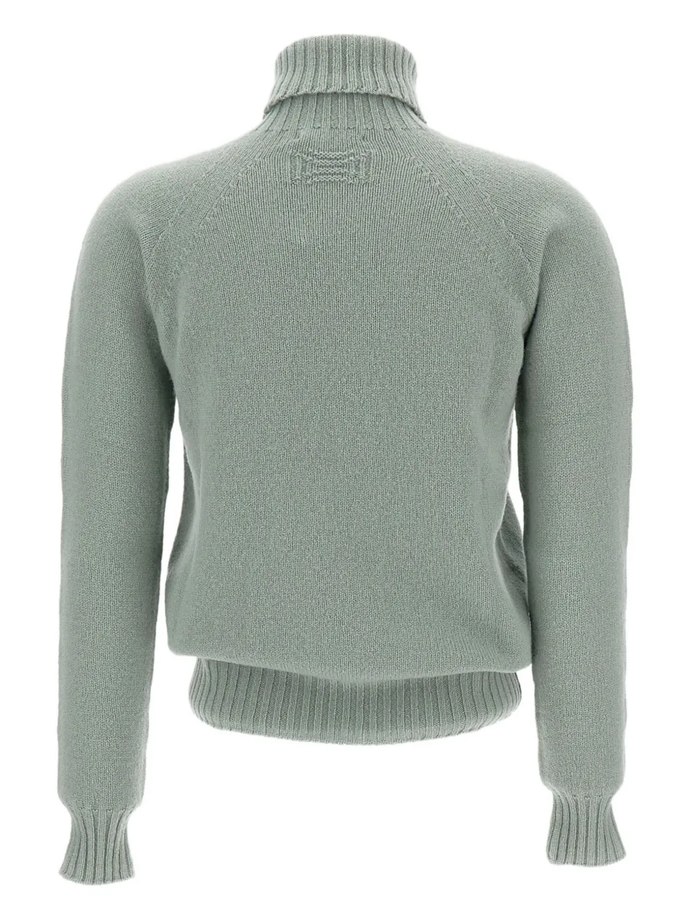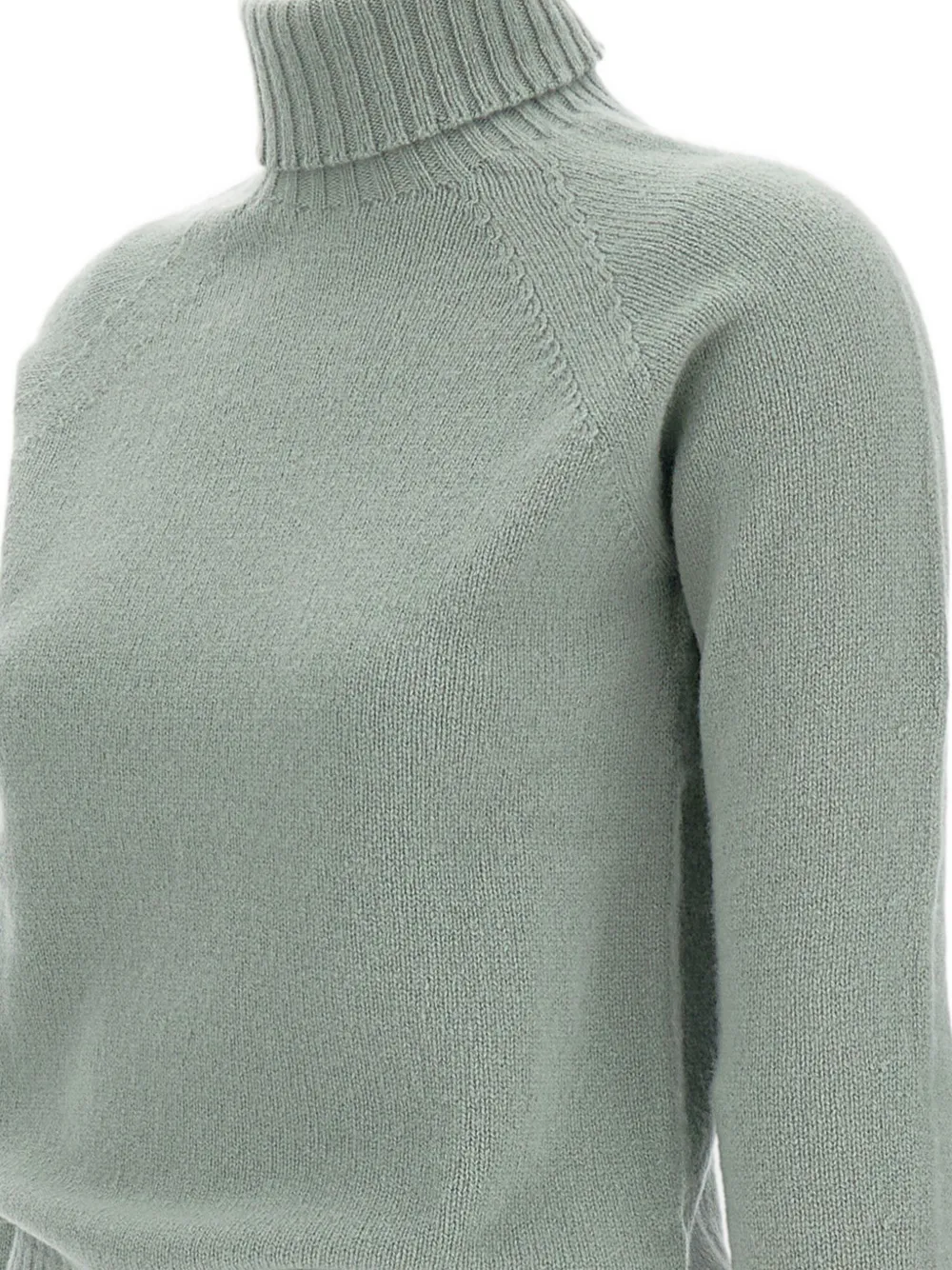 Светло-зеленая водолазка, рукава реглан, ребристые манжеты, ребристый подол, шерсть ягненка.