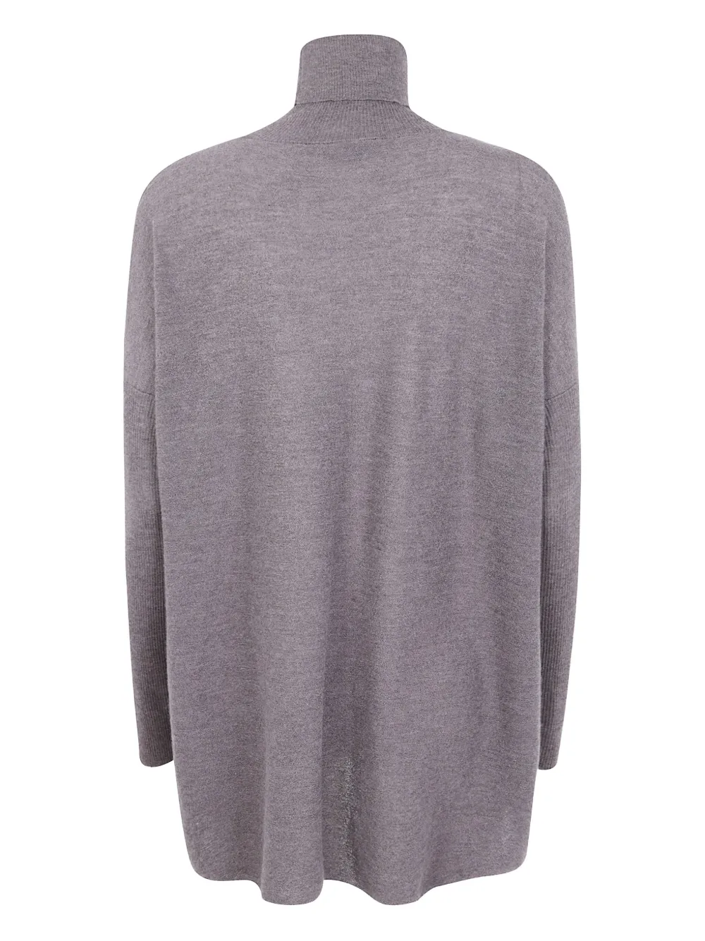 Серая водолазка с ребристым тиснением, длинные рукава, прямой подол