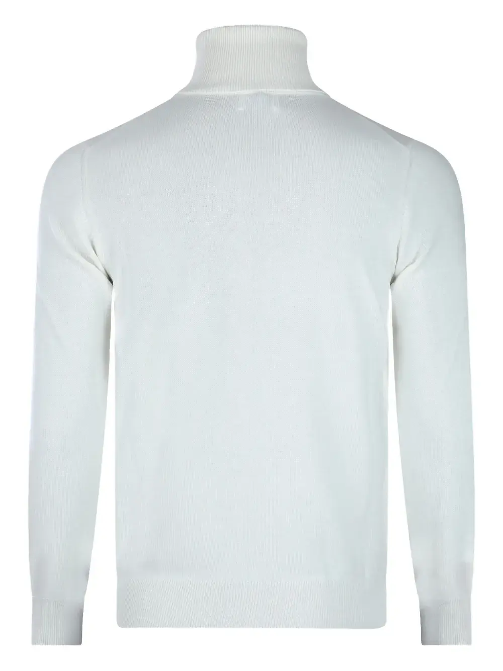 Белая водолазка с длинными рукавами и ребристыми манжетами.