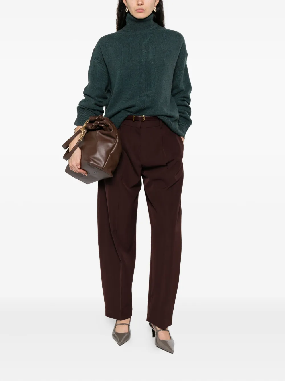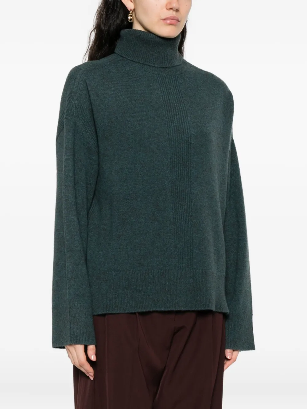 Зеленая водолазка с длинными рукавами, ребристые детали, смесь девственной шерсти и яка