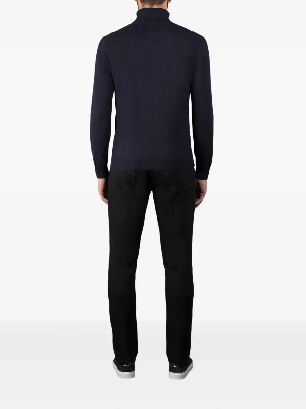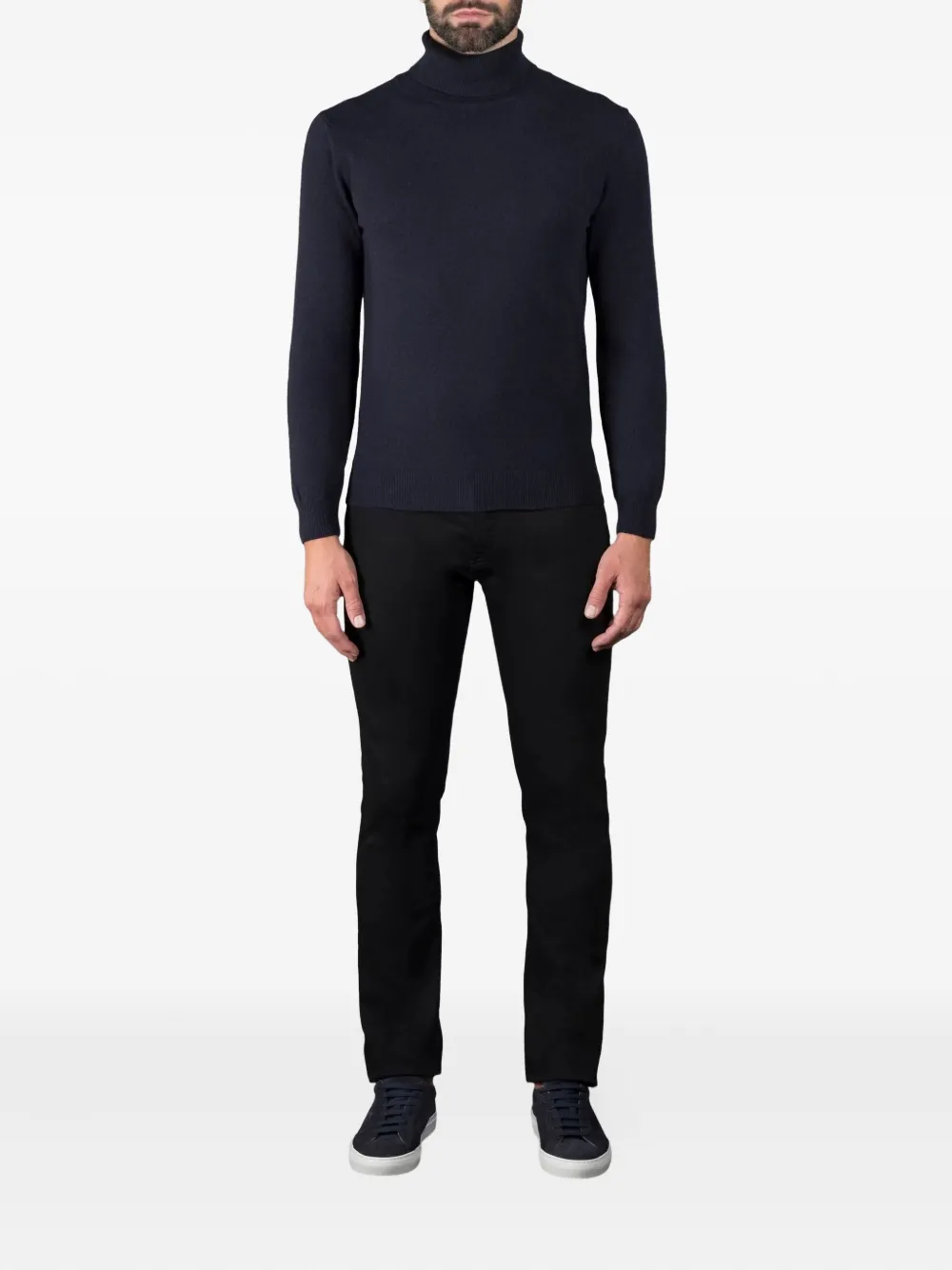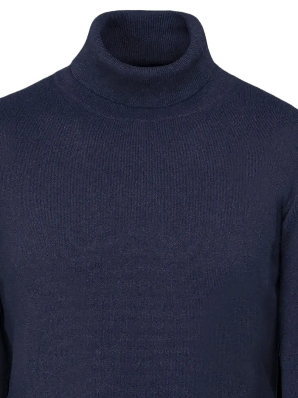 Водолазка темно-синего цвета с ребристой текстурой, длинные рукава, прямой подол