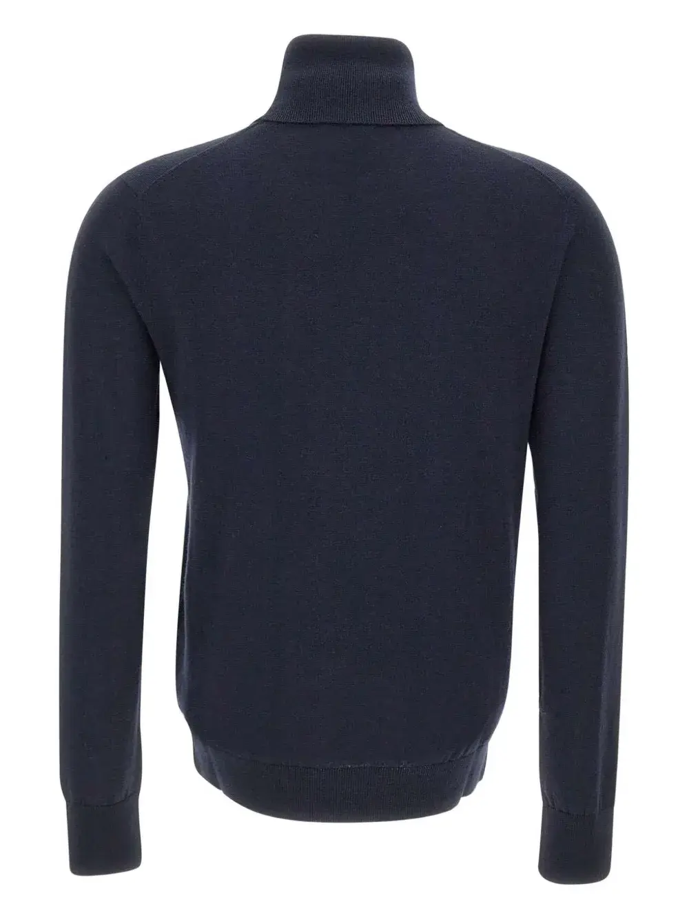Длинные рукава темно-синего цвета, вышитый логотип, прямой подол, ребристые манжеты.