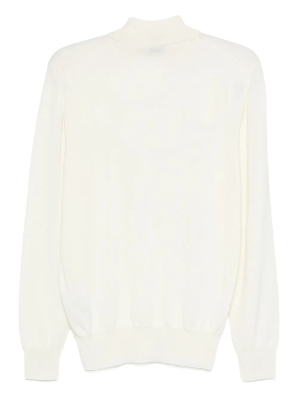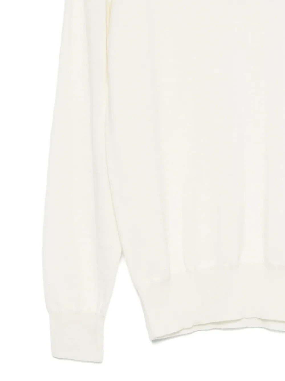 Белая водолазка с длинными рукавами, ребристыми манжетами и ребристым подолом из шерсти.