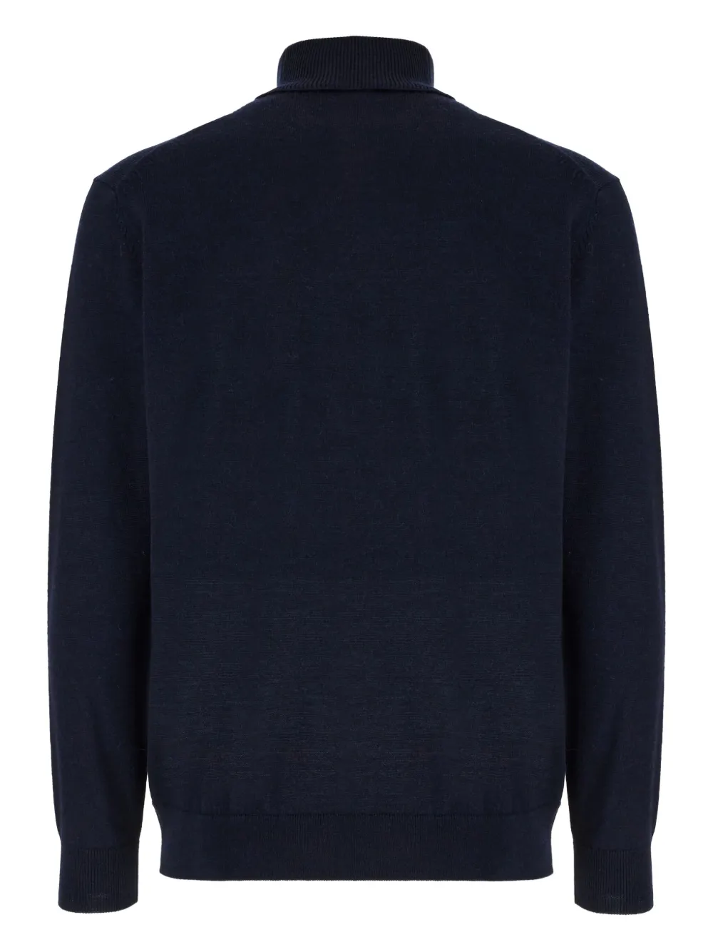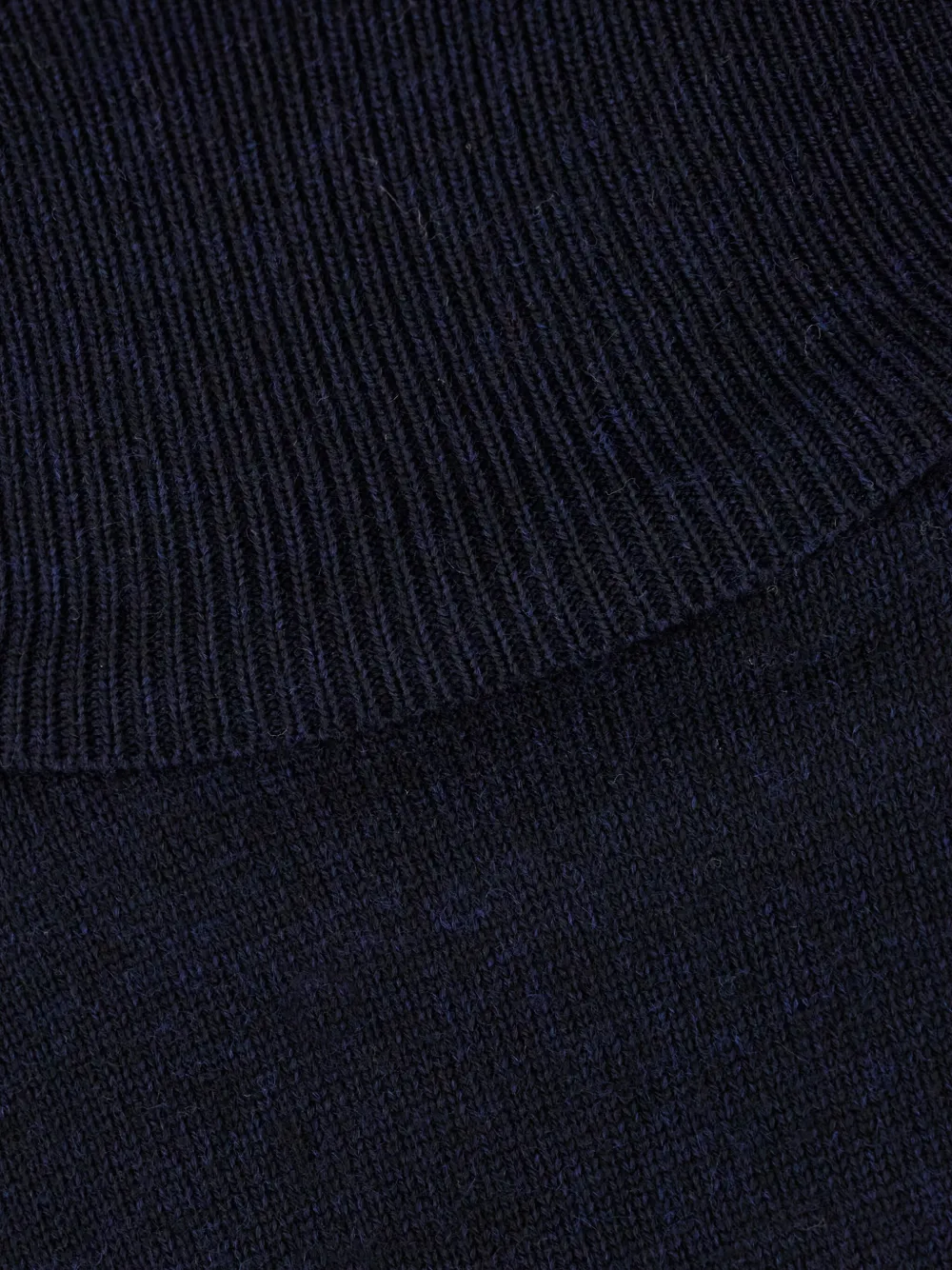 Темно-синяя водолазка с ребристым воротником, длинными рукавами и прямым подолом