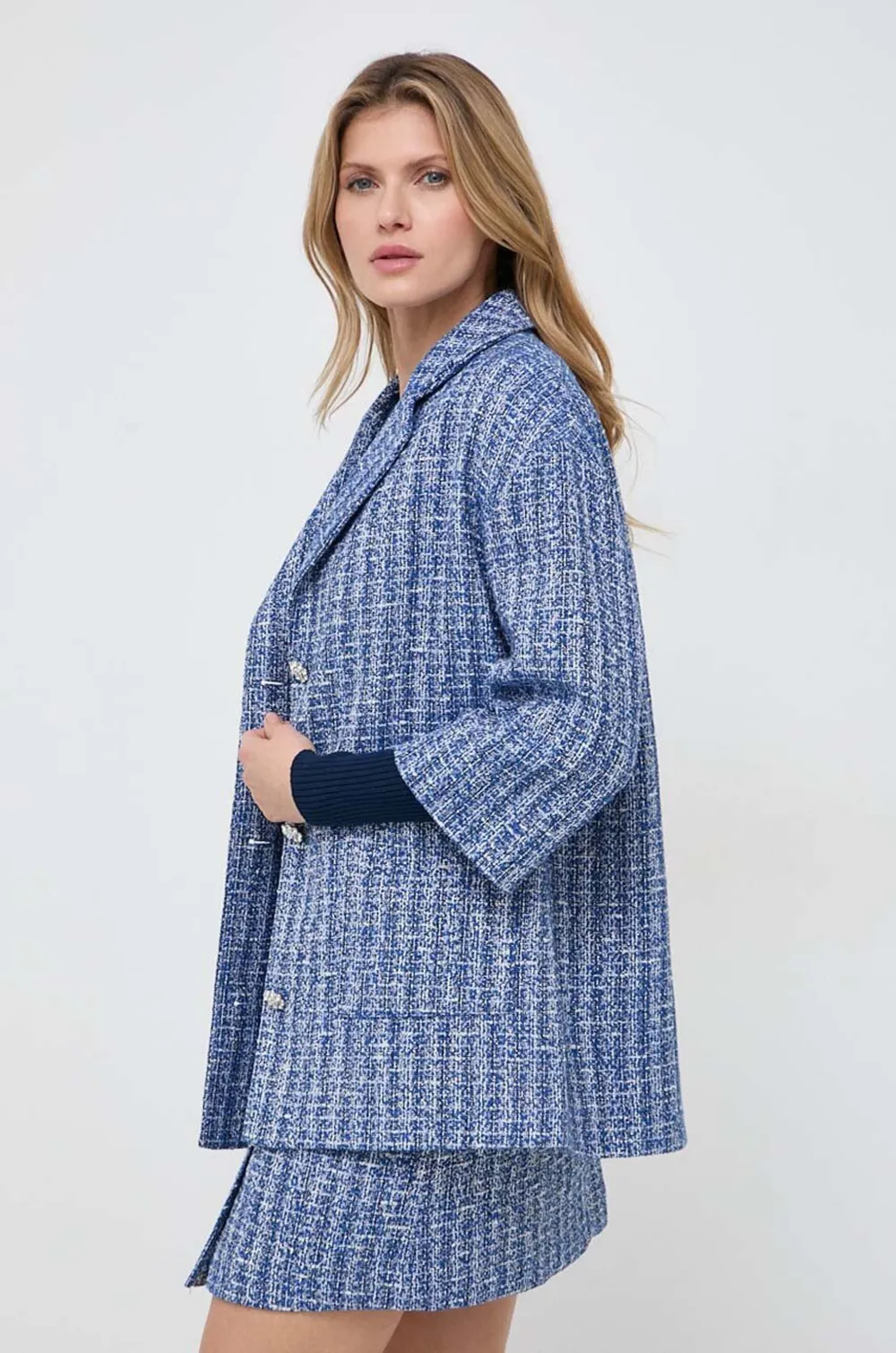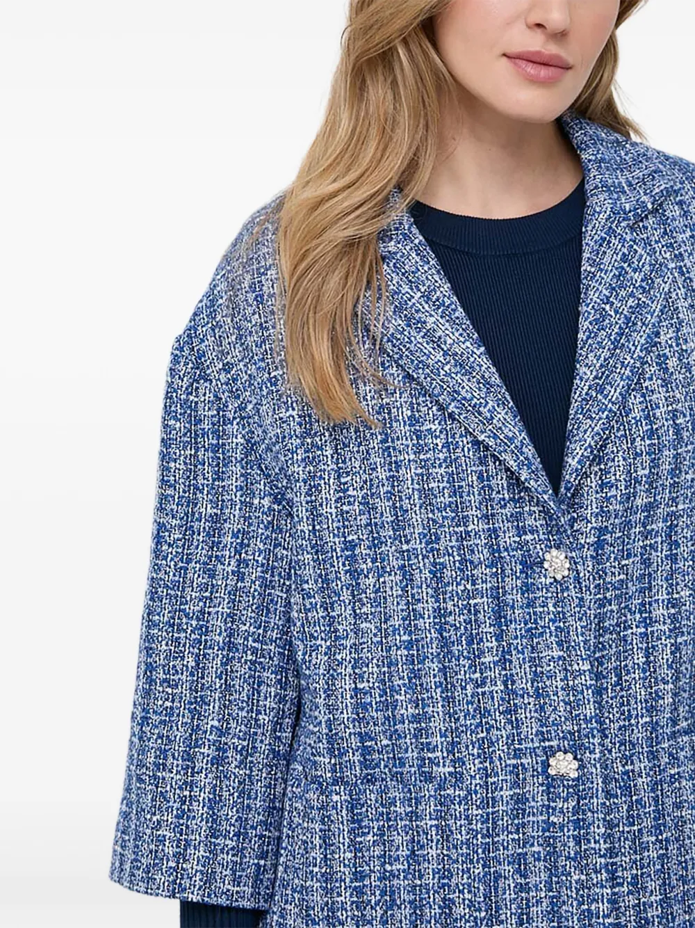 Синяя твидовая текстура, зазубренные лацканы, декорированные пуговицами