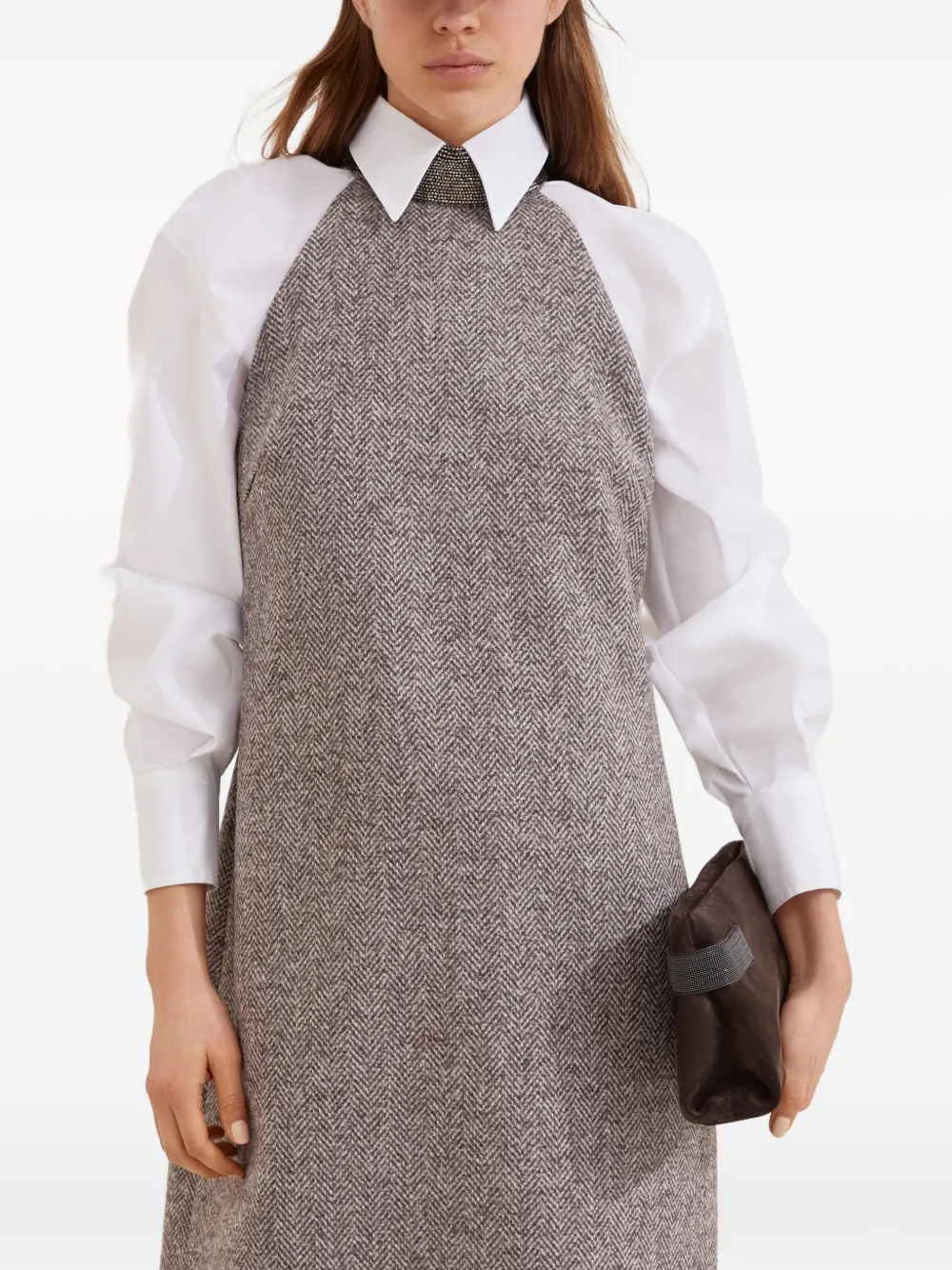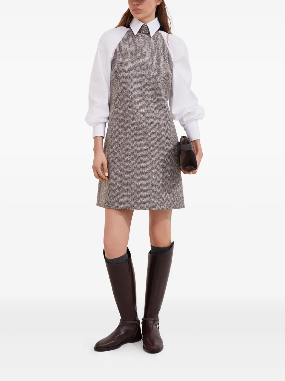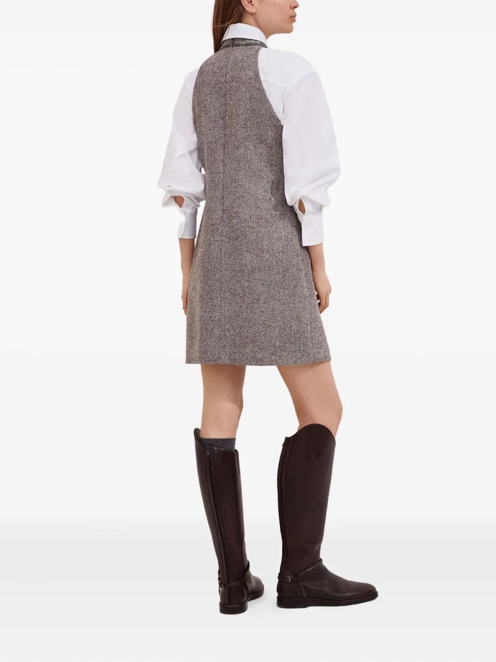 Твидовое платье с вырезом халтер Brunello Cucinelli, коричневый