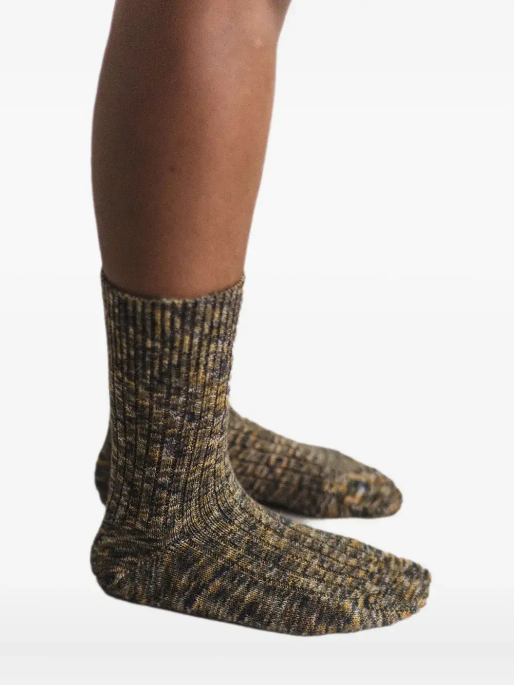 Ребристый трикотаж с эффектом меланжа оливкового цвета, высота до щиколотки. Перед открытием убедитесь, что носки и чулочно-носочные изделия можно вернуть только в оригинальной, нераспечатанной упаковке.