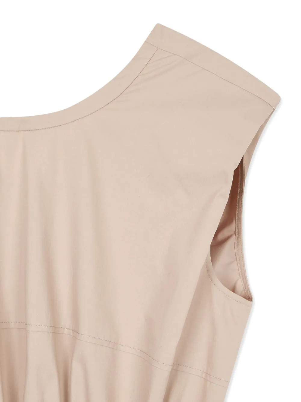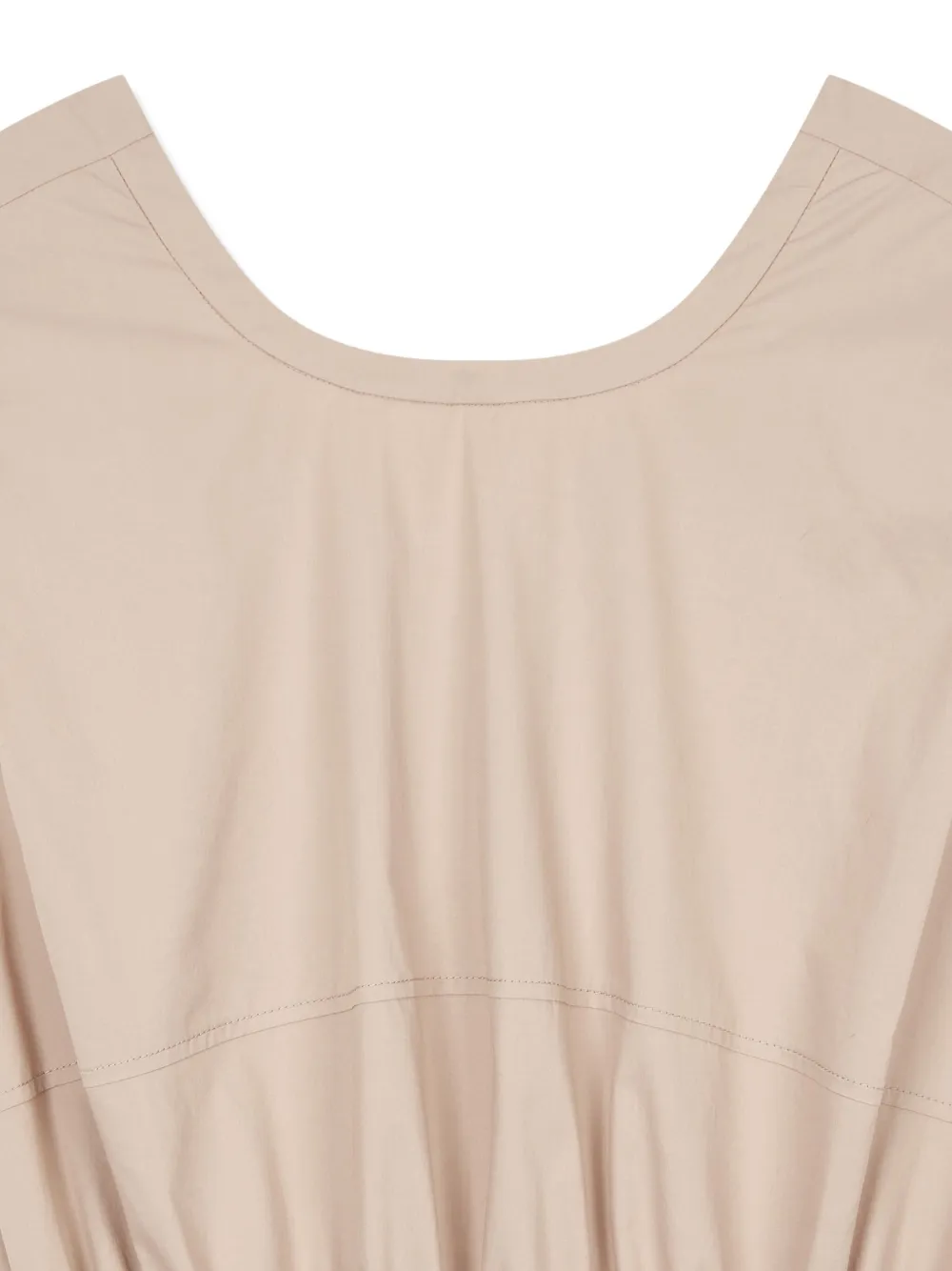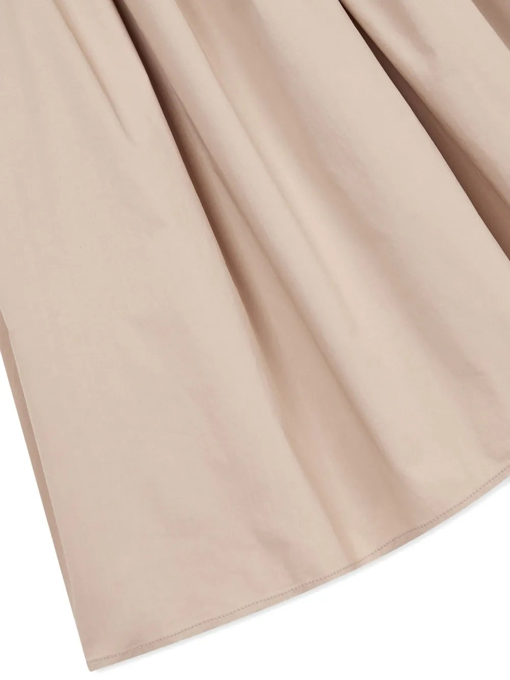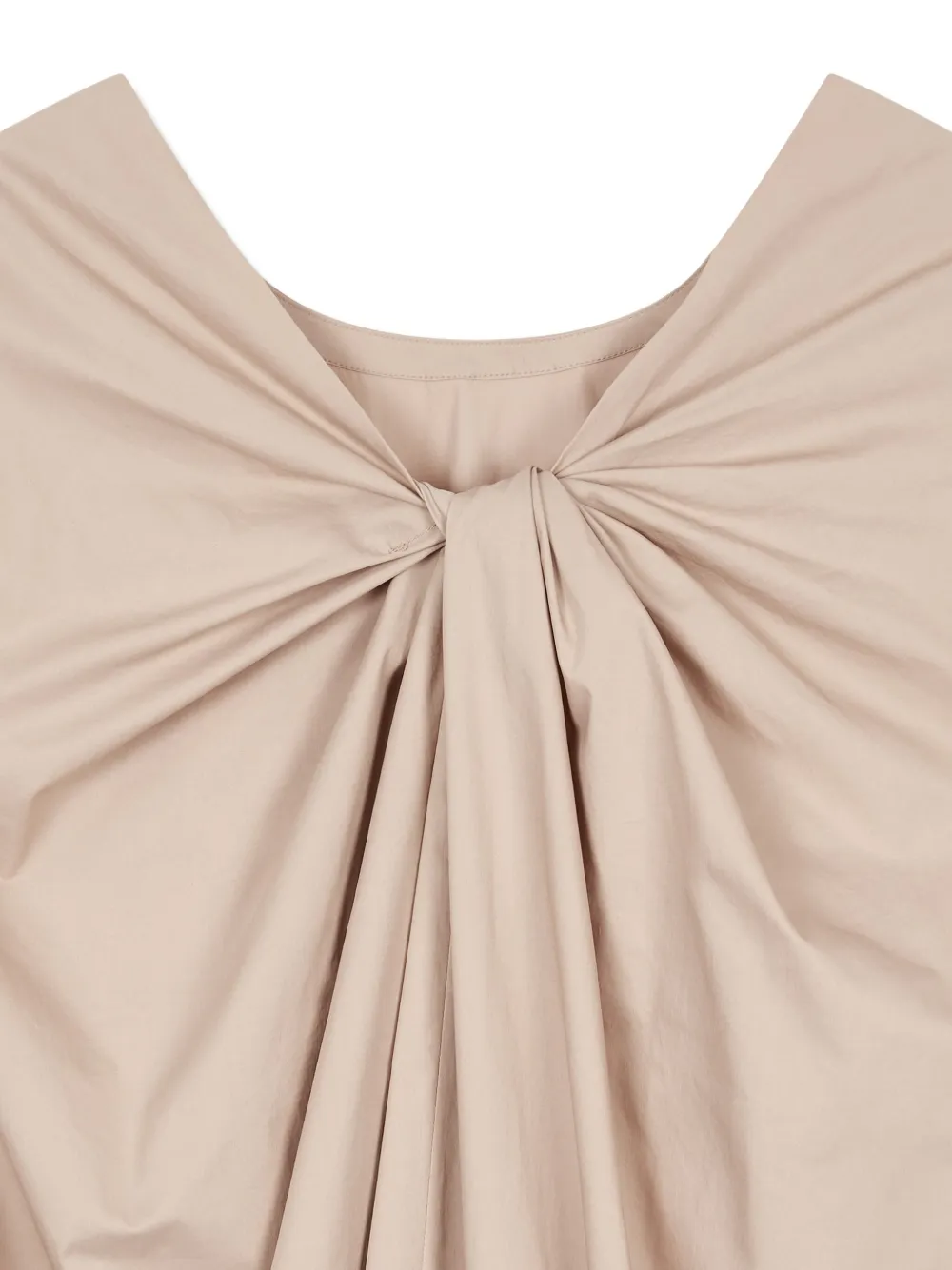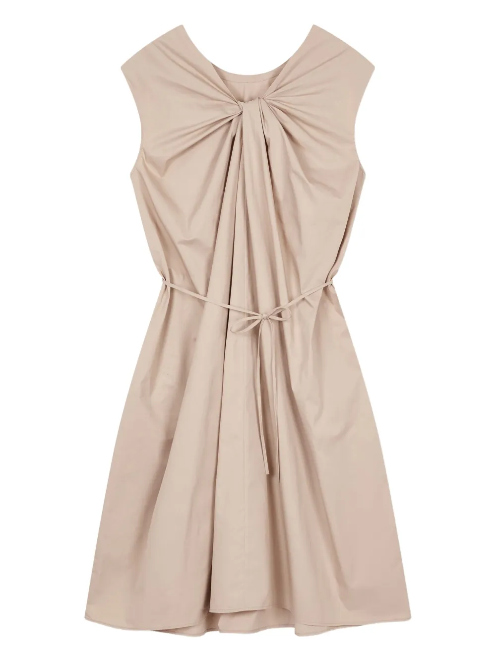 Бежевый перекрученный вырез, присборенная талия, без рукавов, юбка А-силуэта, едва заметная отделка