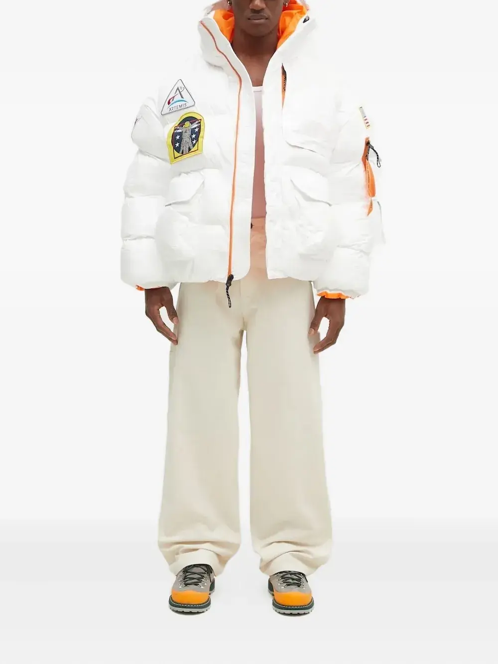 Белая нашивка с логотипом на прямом штанине с несколькими карманами