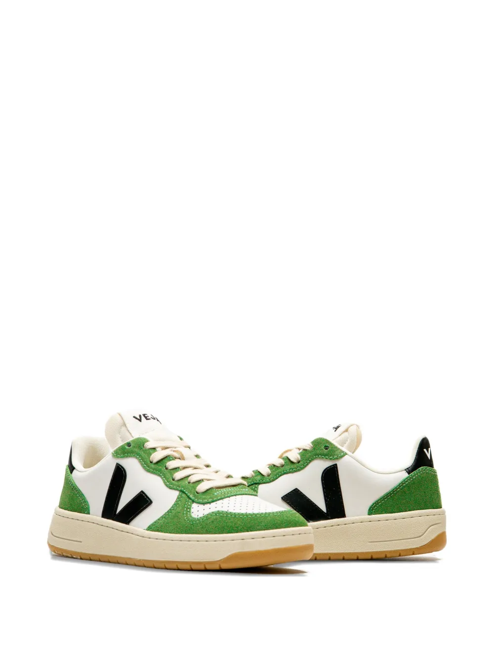Вставки из белой замши зеленого цвета, V-образный логотип, перфорированный носок, плоские шнурки