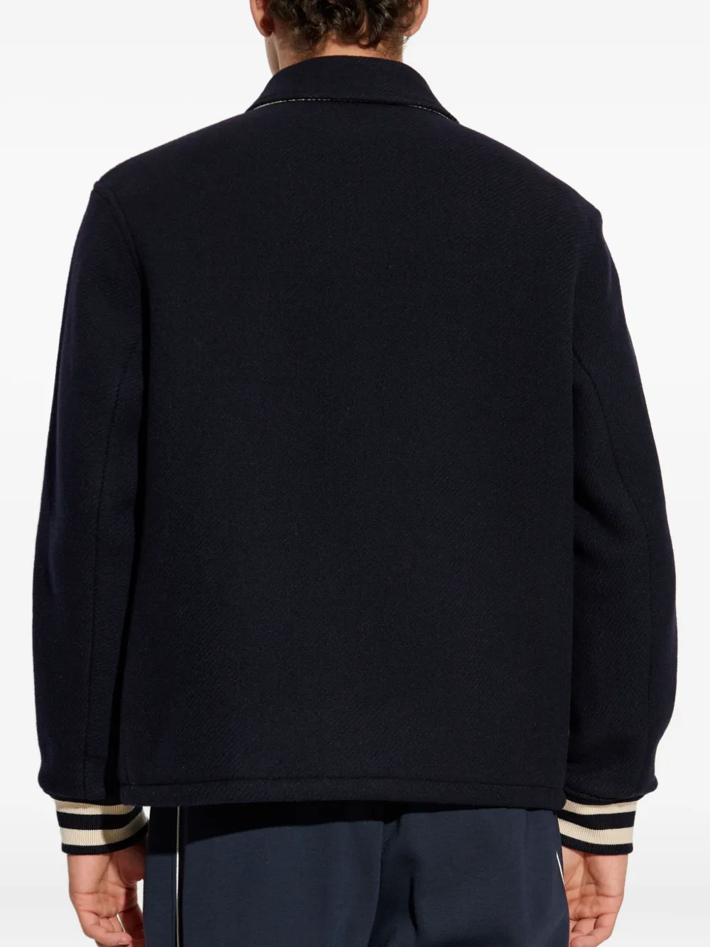 Темно-синяя аппликация с логотипом, застежка на пуговицы, ребристые манжеты, прорезные карманы