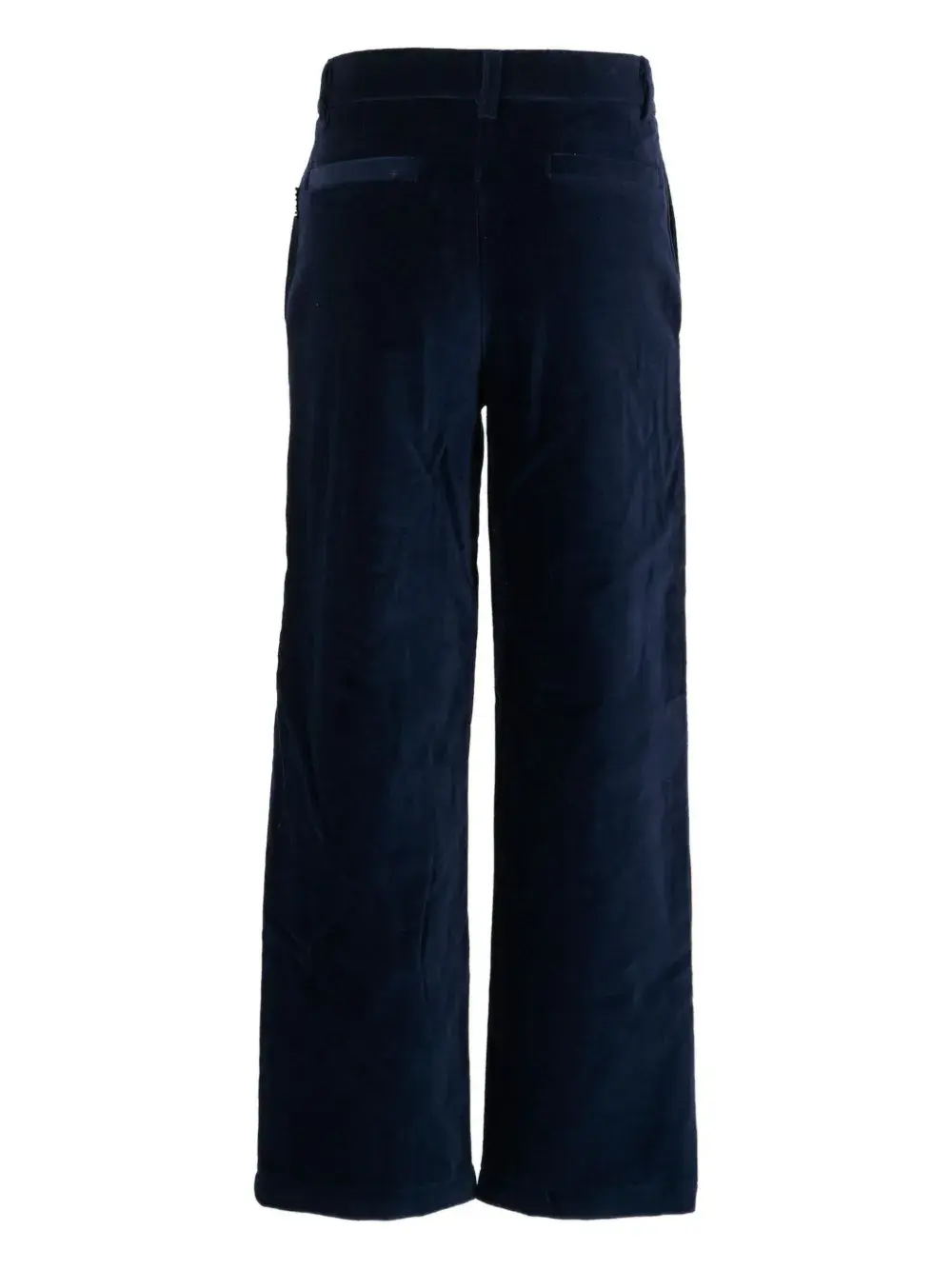 Темно-синий бархат, фактура, прорезные задние карманы, потайная застежка, прямой брючин