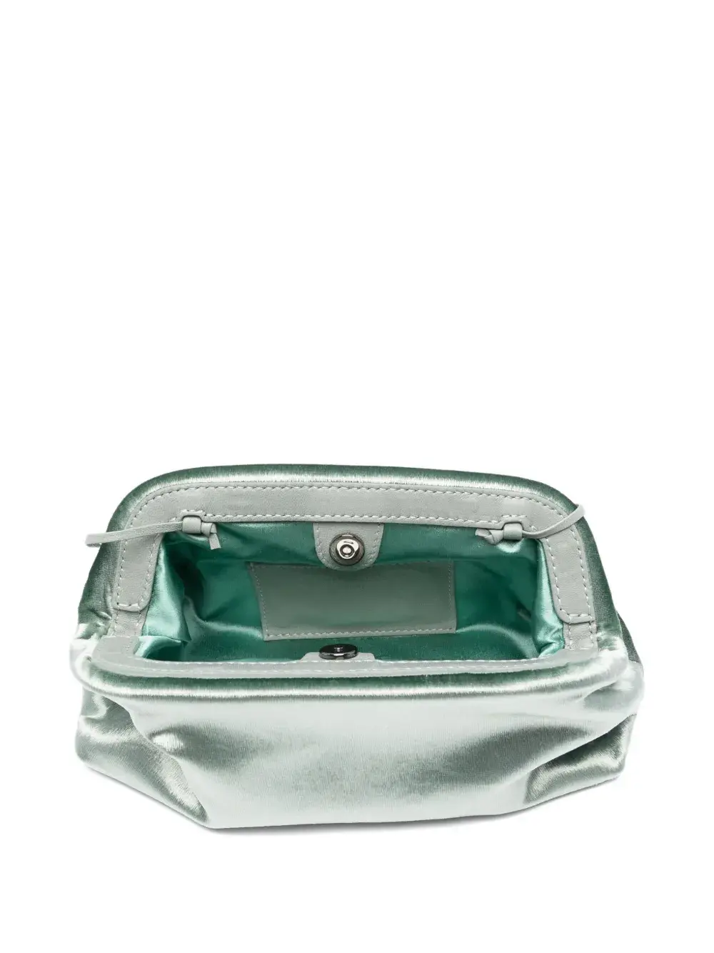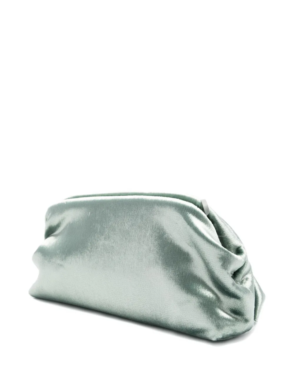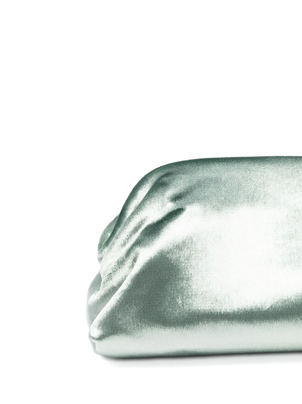Текстура светло-зеленого бархата, собранная на застежку-пряжку, внутренний карман.