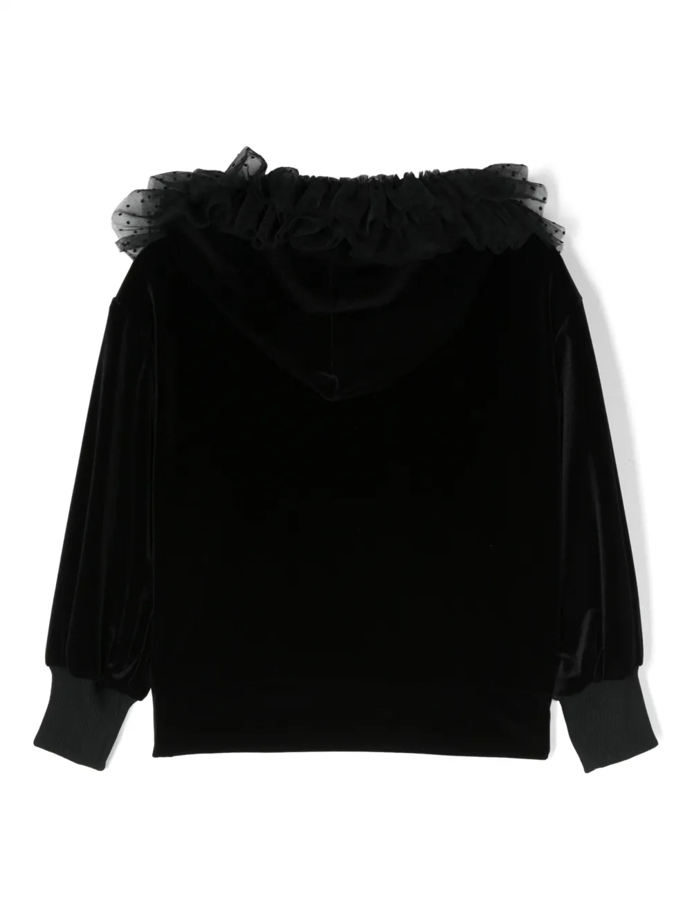 Бархатное худи с тюлем пуэн-деспри Monnalisa, черный