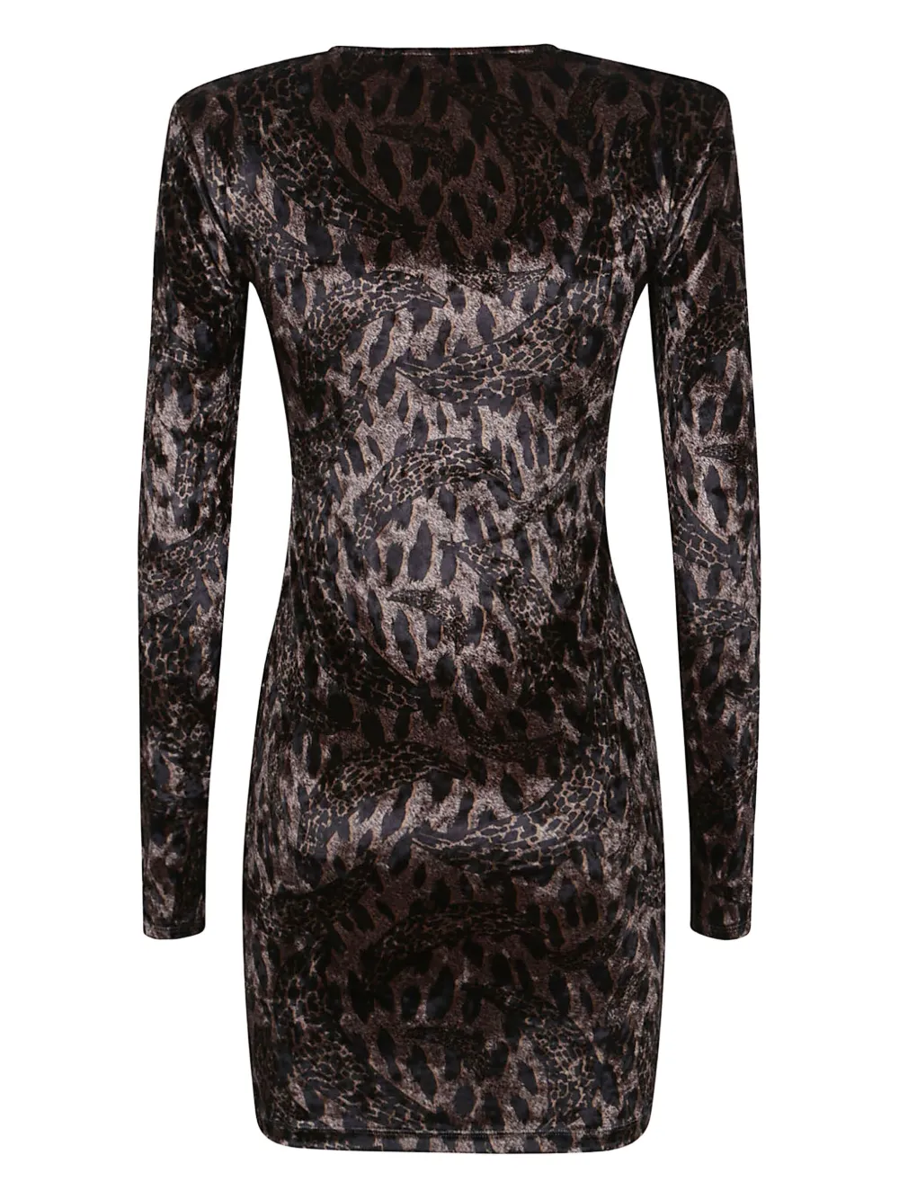 Коричневый бархат с леопардовым принтом, длинные рукава, круглый вырез