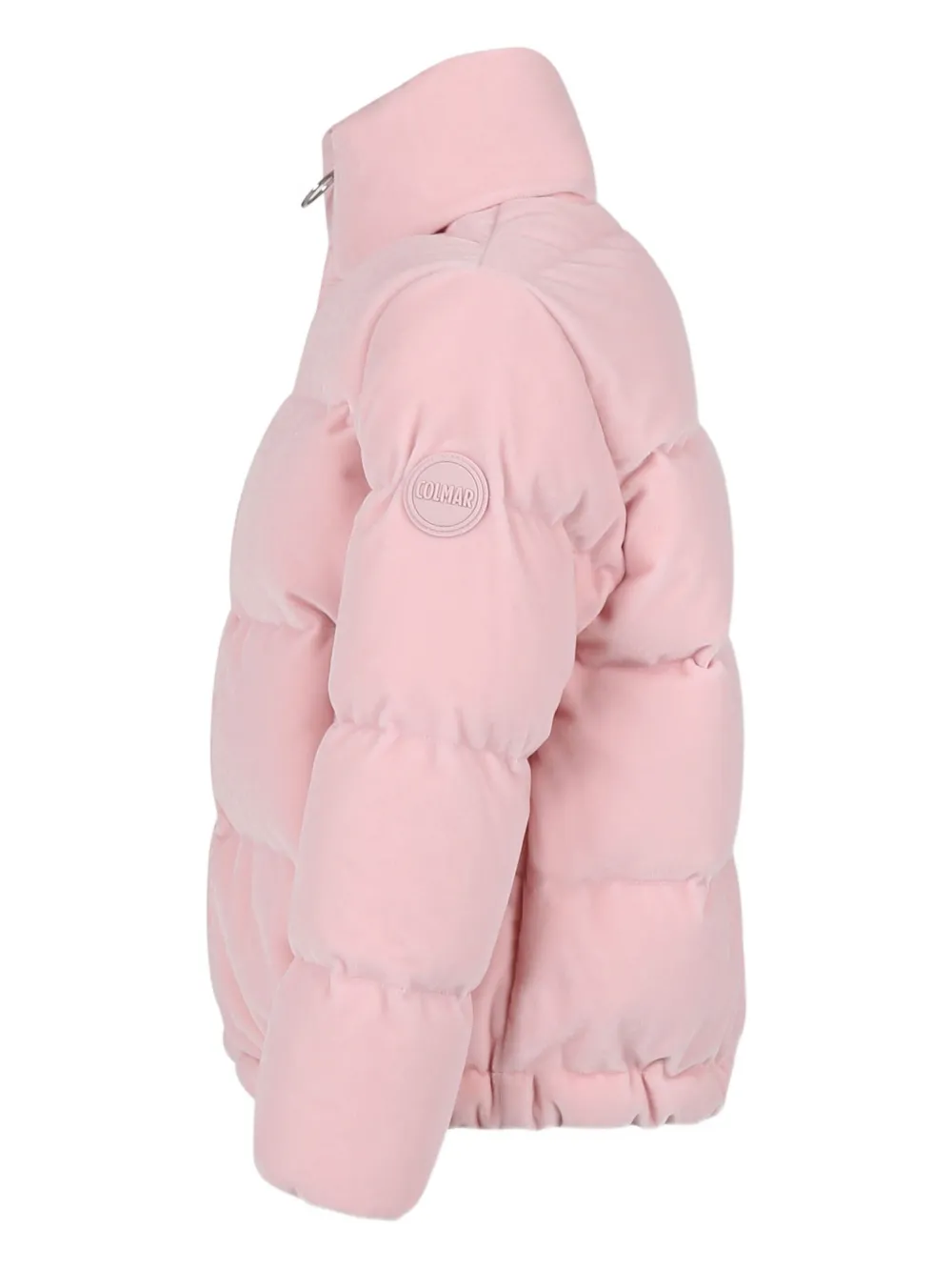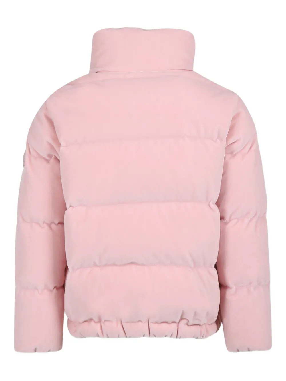 Розовый стеганый пуховик с высоким воротом, застежкой-молнией, нашивкой с логотипом, наполнителем из пуха и пера
