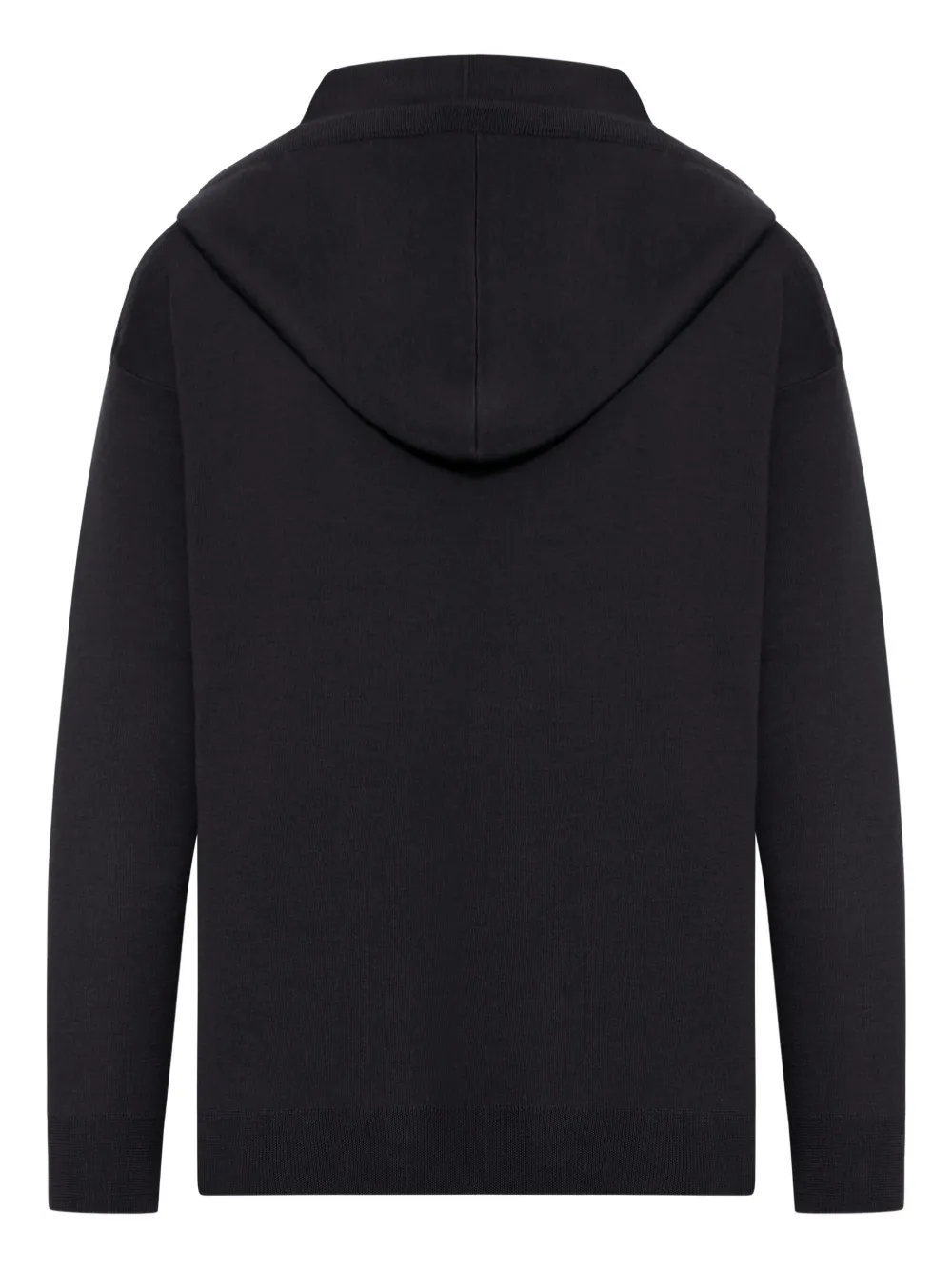 Черный шерстяной свитер с капюшоном, завязывающимся на шнурок, с бархатной отделкой.