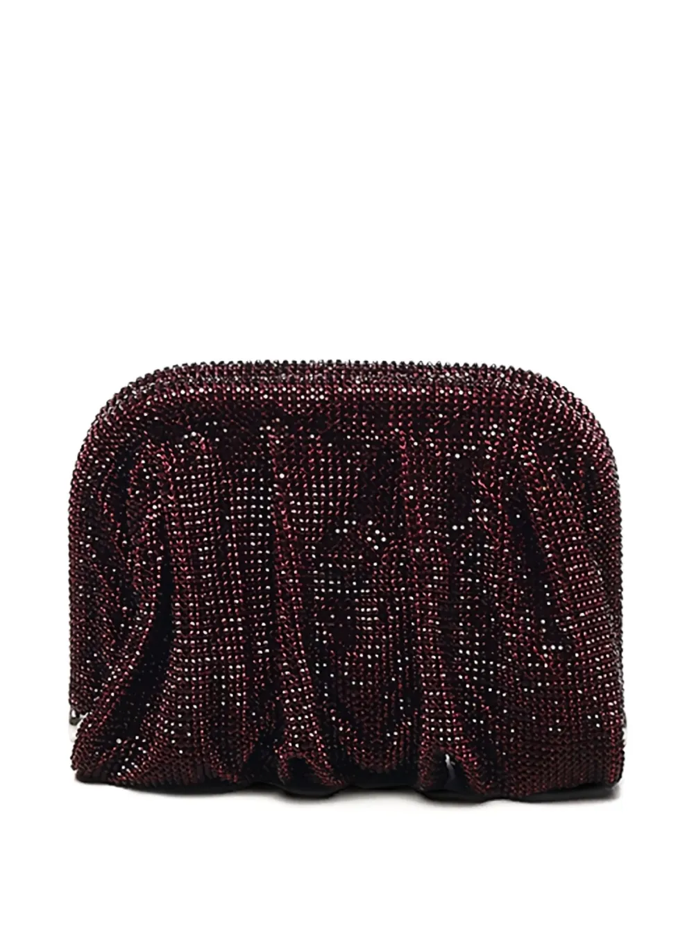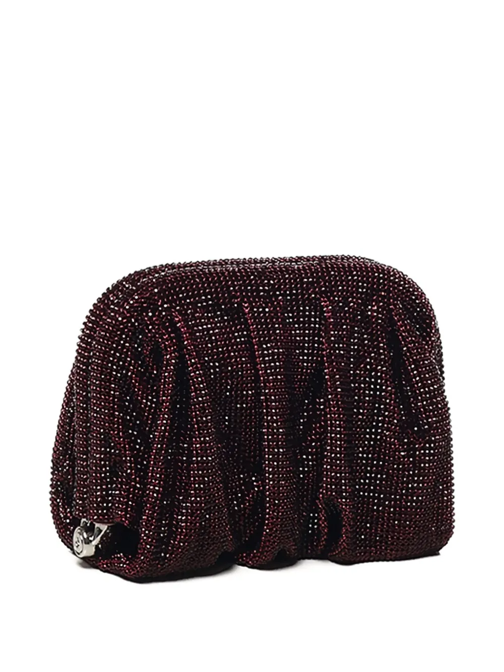 Темно-красные стразы, драпированные детали, съемный ремешок-цепочка, застежка на каркасную застежку