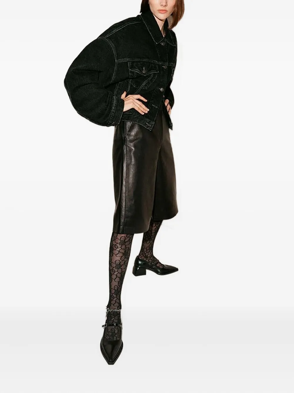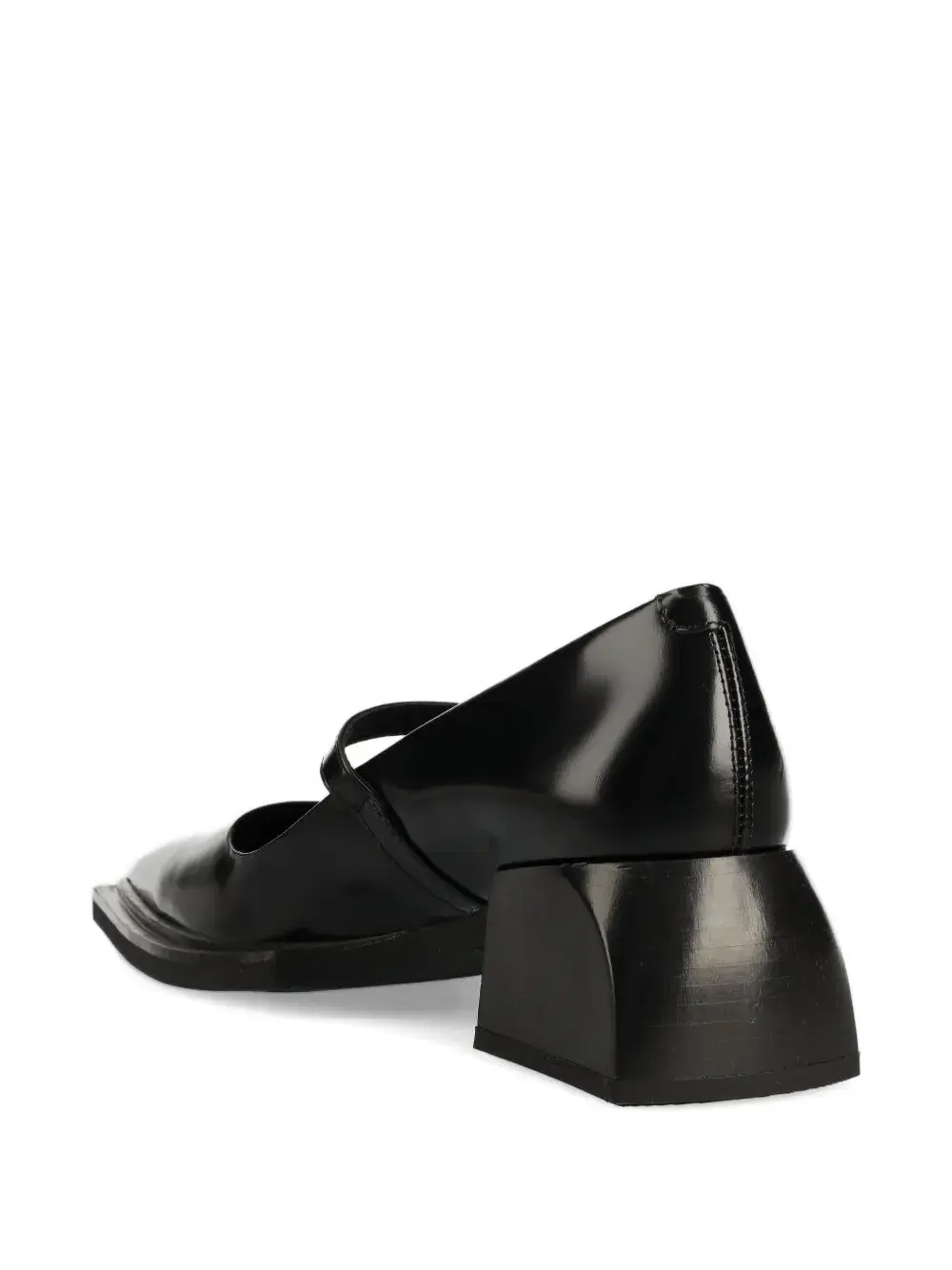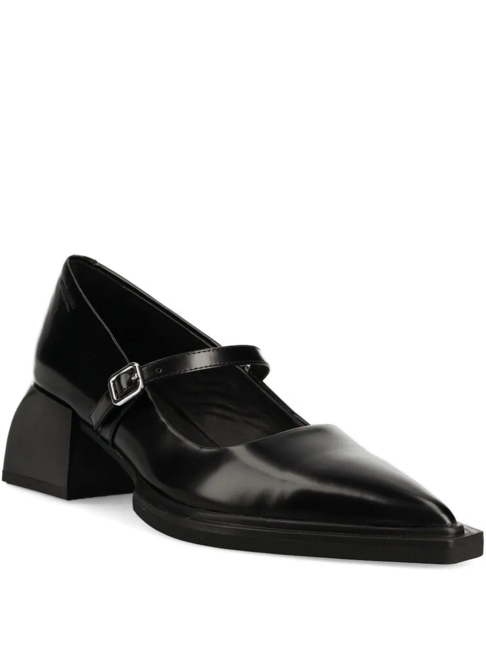 Верх из черной кожи с острым носком, ремешком-пряжкой и квадратным каблуком