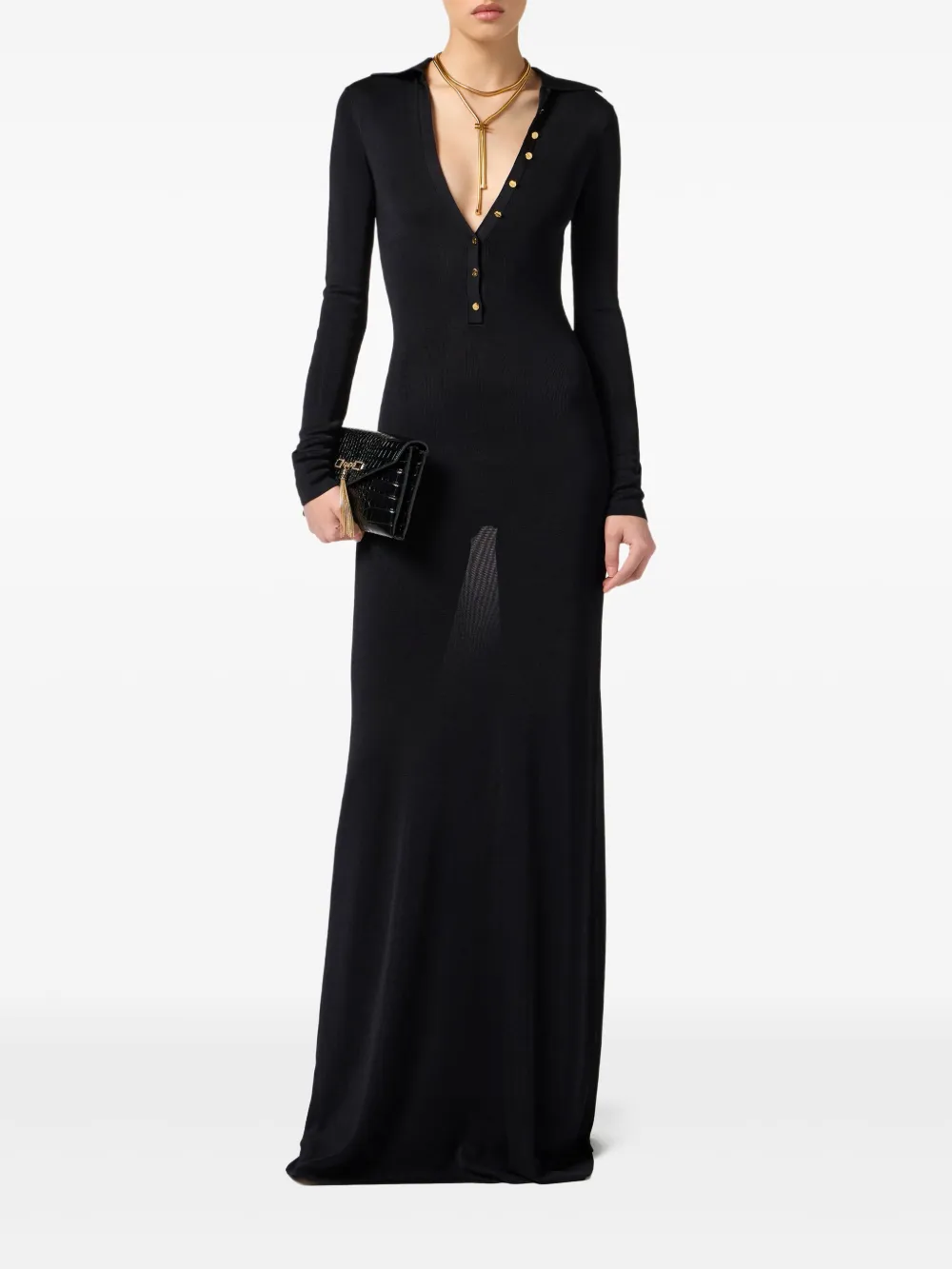Платье макси с V-образным вырезом Elisabetta Franchi, черный