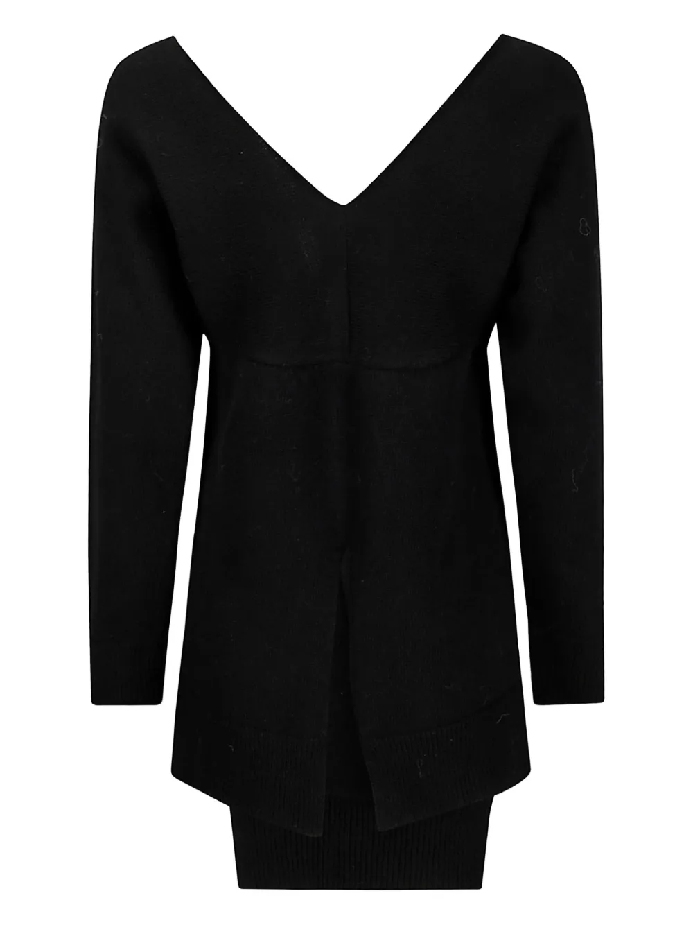 Черный V-образный вырез, длинные рукава, ребристые манжеты, ребристый подол.