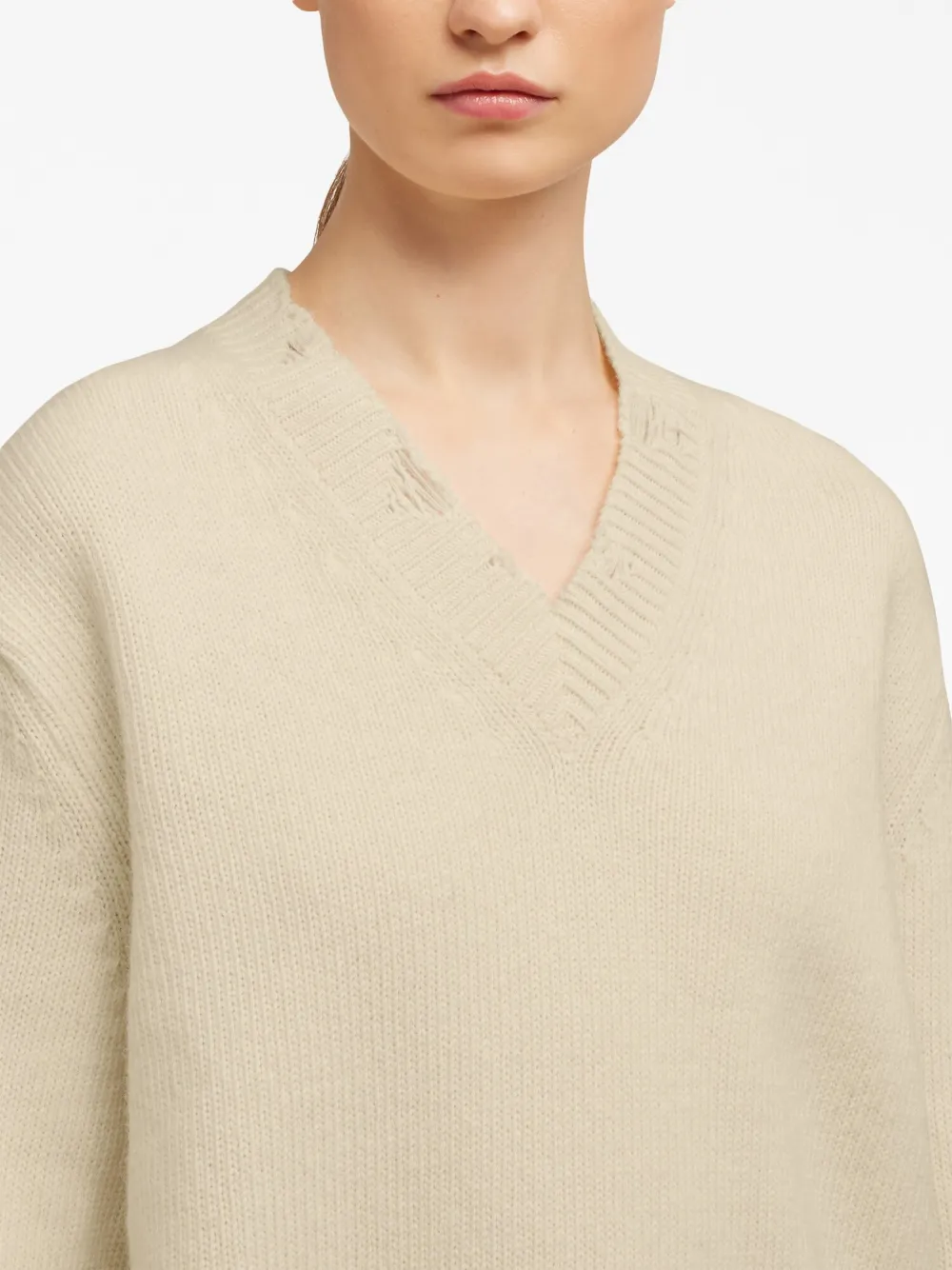 Джемпер с V-образным вырезом в рубчик AMI Paris, нейтральный 24 426₽