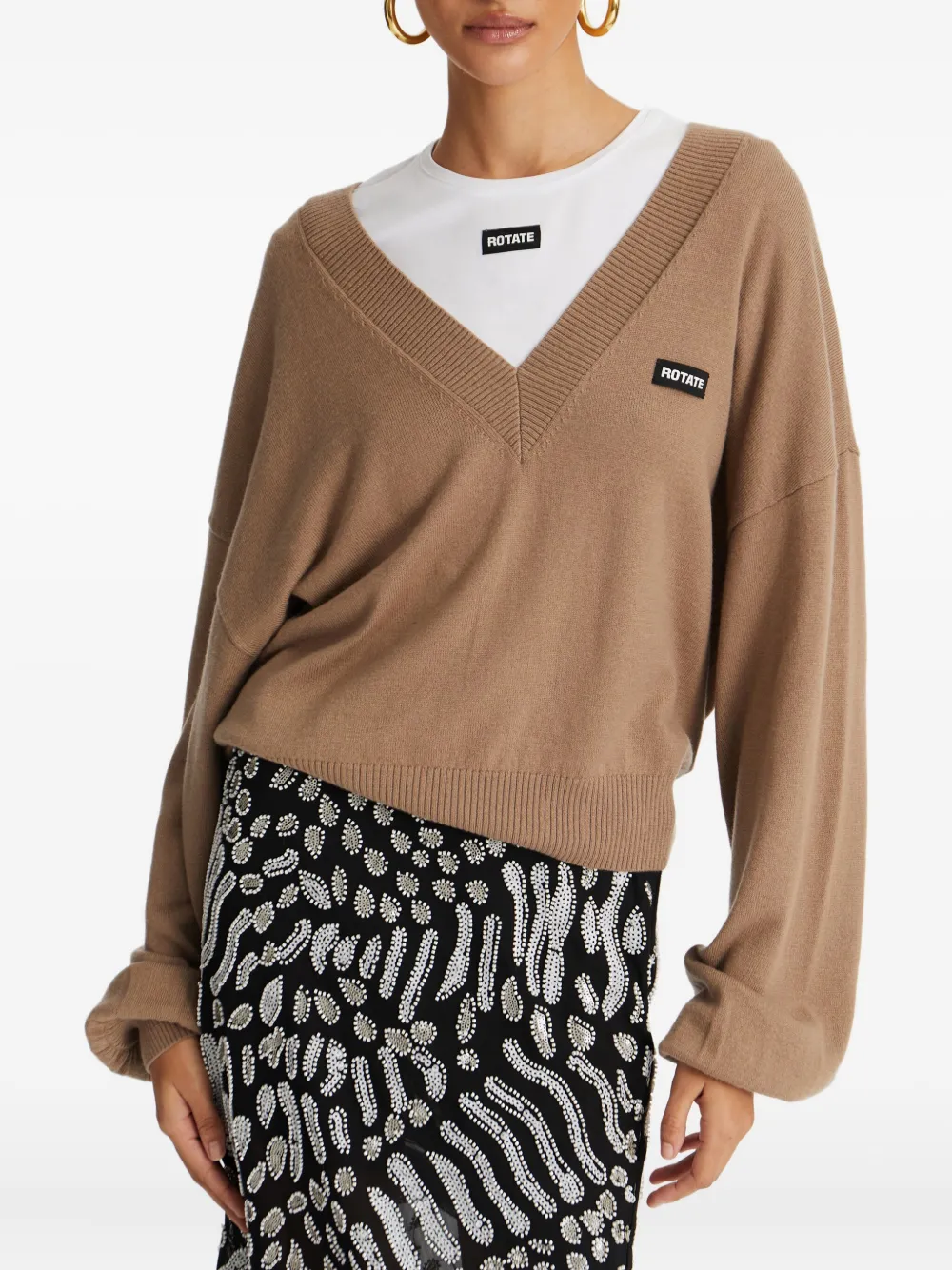 Свитер с V-образным вырезом ROTATE BIRGER CHRISTENSEN, коричневый