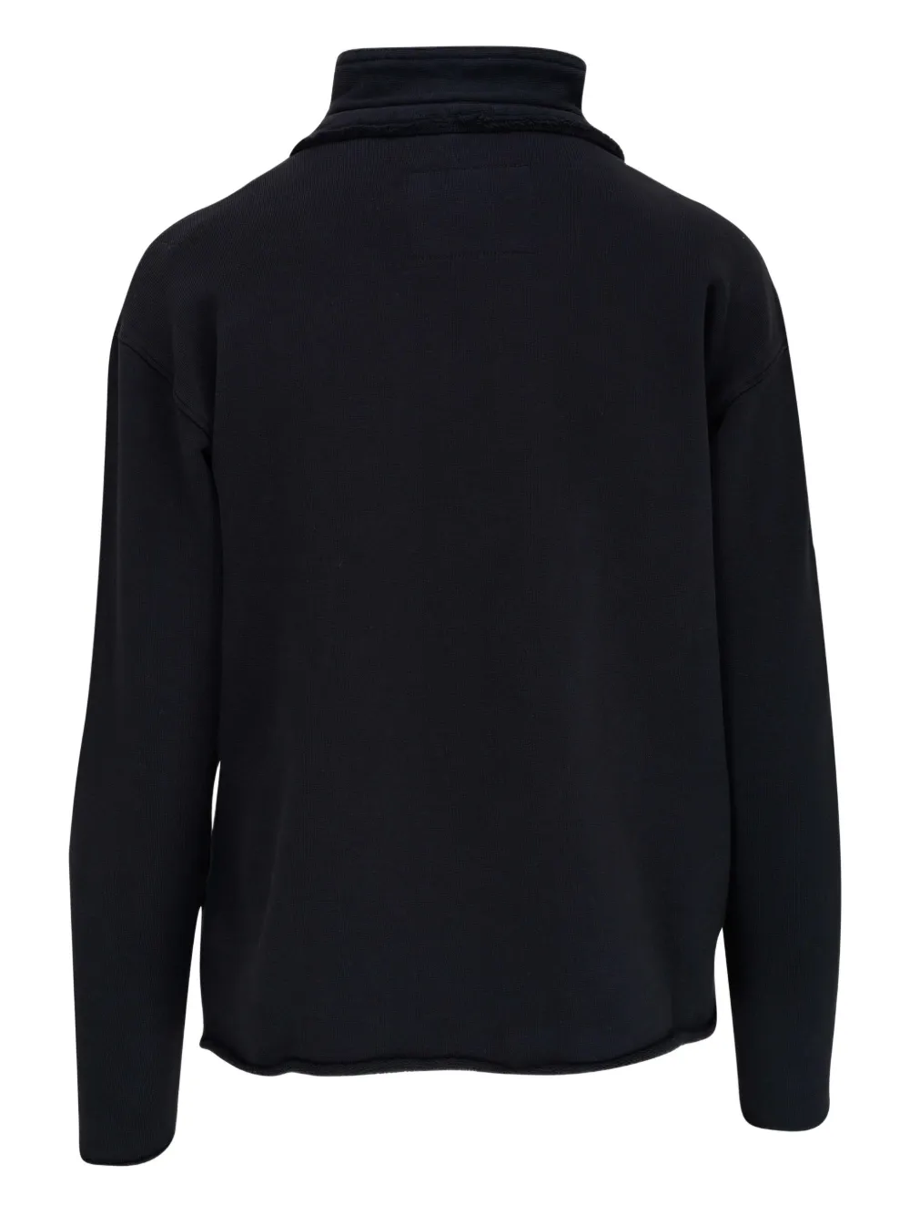 Черный хлопок с V-образным вырезом и длинными рукавами