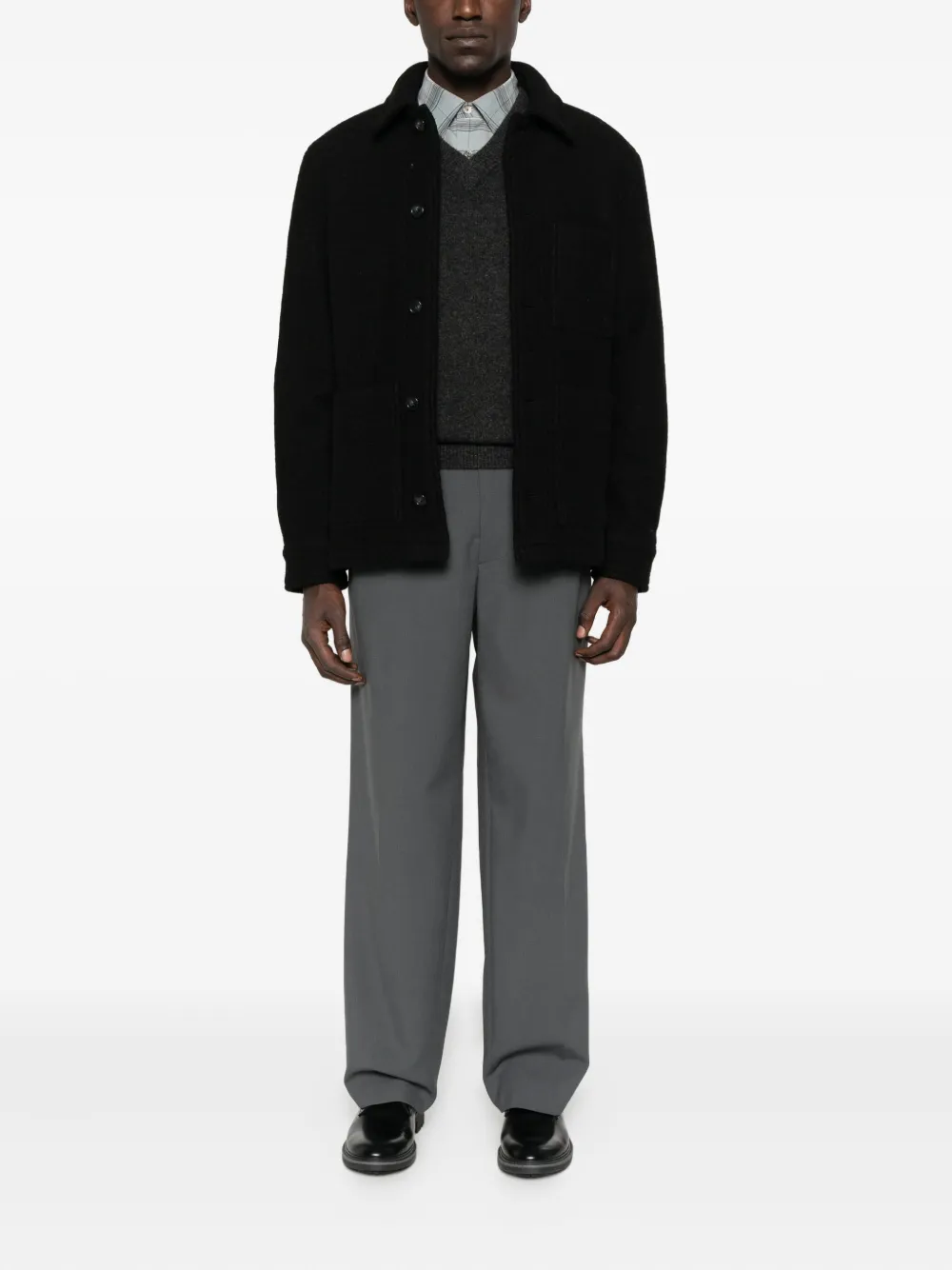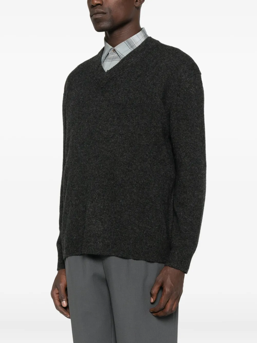 Шерстяной свитер с V-образным вырезом A.P.C., серый