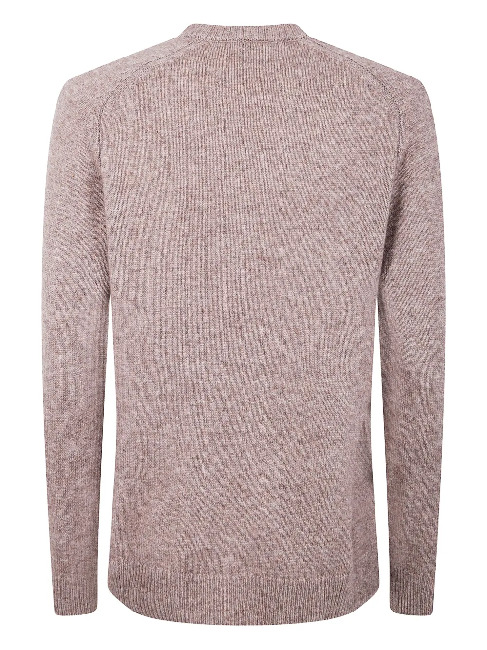 Коричневый, с V-образным вырезом, длинными рукавами, ребристой отделкой, из смеси шерсти и кашемира.