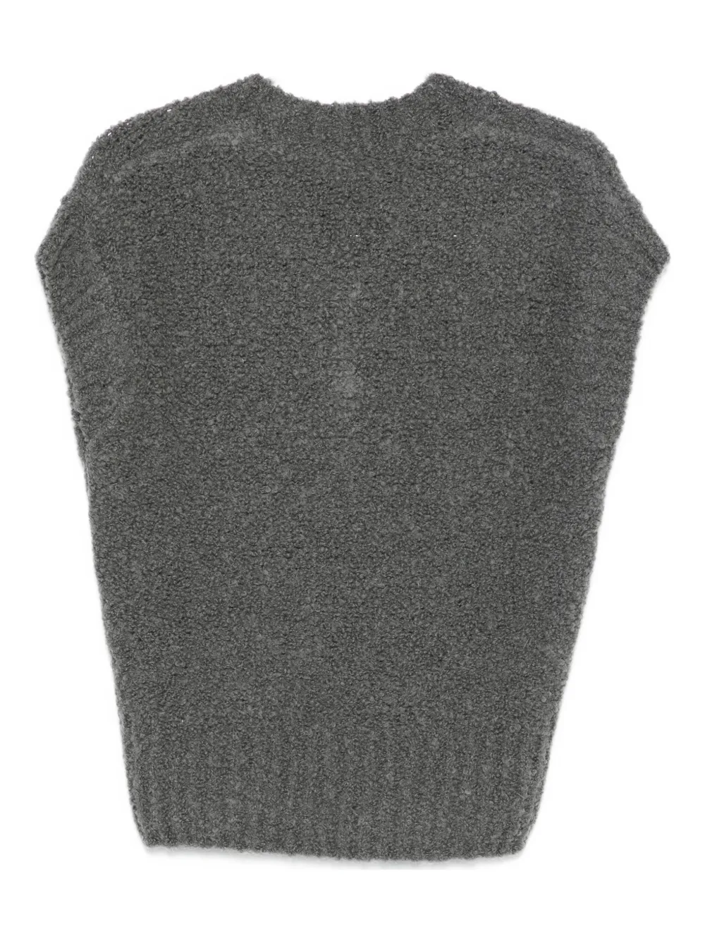 Серый шерстяной трикотаж без рукавов с V-образным вырезом