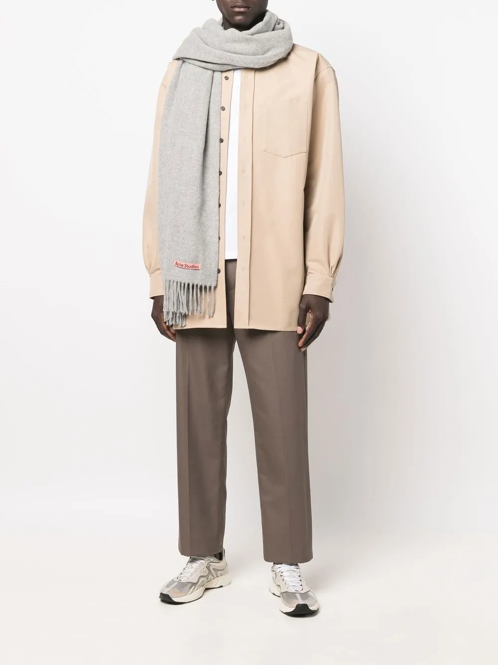 Объемный шерстяной шарф с бахромой Acne Studios, серый