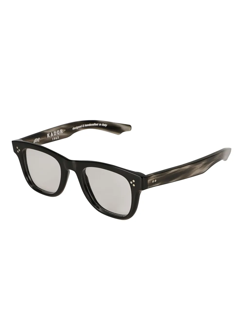 Прозрачные линзы с серым черепаховым узором, квадратная оправа, тонкие детали золотистого оттенка. Очки поставляются с защитным футляром.