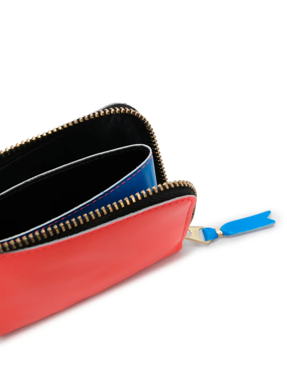 Зелёный с оранжевым кожаный бумажник 'Super Fluo' от Comme Des Garçons. Застёжка на молнии сверху.