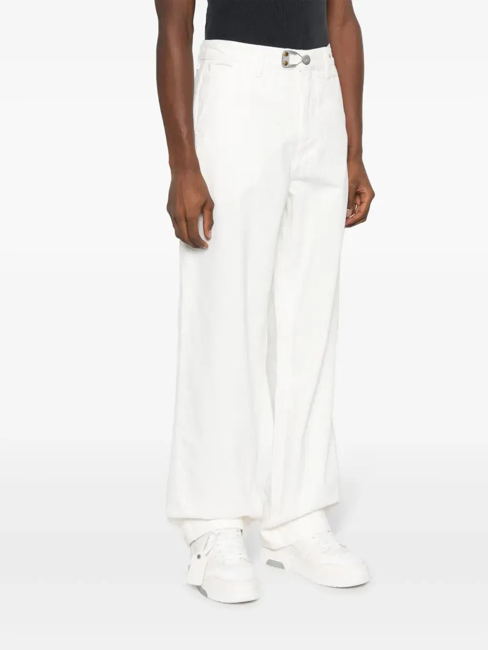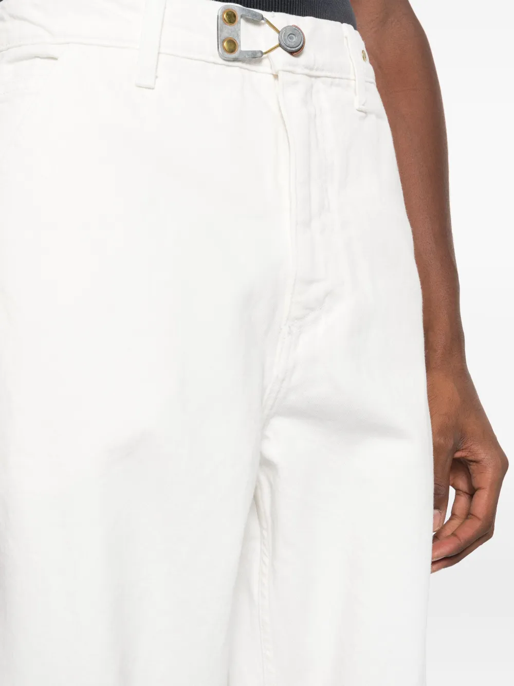 Белый, хлопок, деним, завышенная талия, застежка на зажиме и широкий крой.